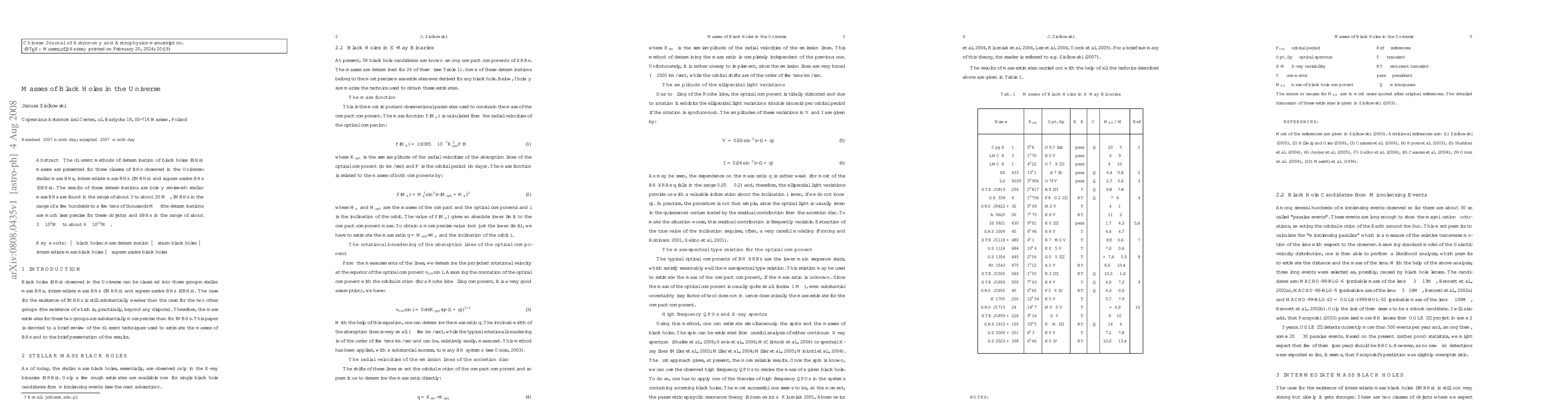 The different methods of determination of black holes (BHs) masses are presented for three classes of BHs observed in the Universe: stellar mass BHs, intermediate mass BHs (IMBHs) and supermassive BHs (SBHs). The results of these determinations are briefly reviewed: stellar mass BHs are found in the range of about 3 to about 20 solar masses, IMBHs in the range of a few hundreds to a few tens of thousands solar masses (the determinations are much less precise for these objects) and SBHs in the range of about 3x10^5 to about 6x10^10 solar masses.