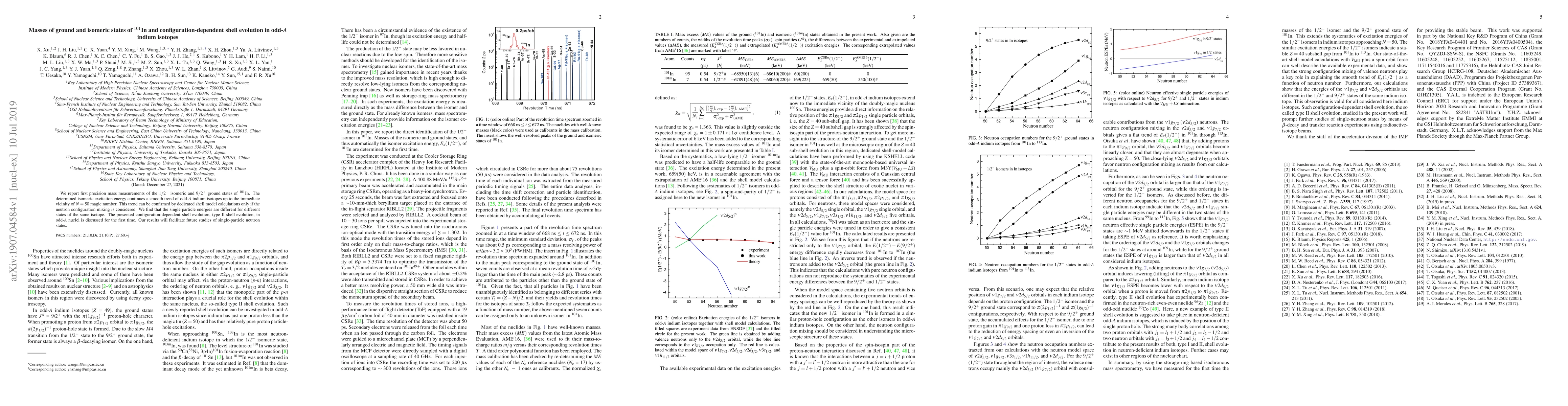 We report first precision mass measurements of the $1/2^-$ isomeric and $9/2^+$ ground states of $^{101}$In. The determined isomeric excitation energy continues a smooth trend of odd-$A$ indium isotopes up to the immediate vicinity of $N=50$ magic number. This trend can be confirmed by dedicated shell model calculations only if the neutron configuration mixing is considered. We find that the single particle energies are different for different states of the same isotope. The presented configuration-dependent shell evolution, type II shell evolution, in odd-$A$ nuclei is discussed for the first time. Our results will facilitate future studies of single-particle neutron states.