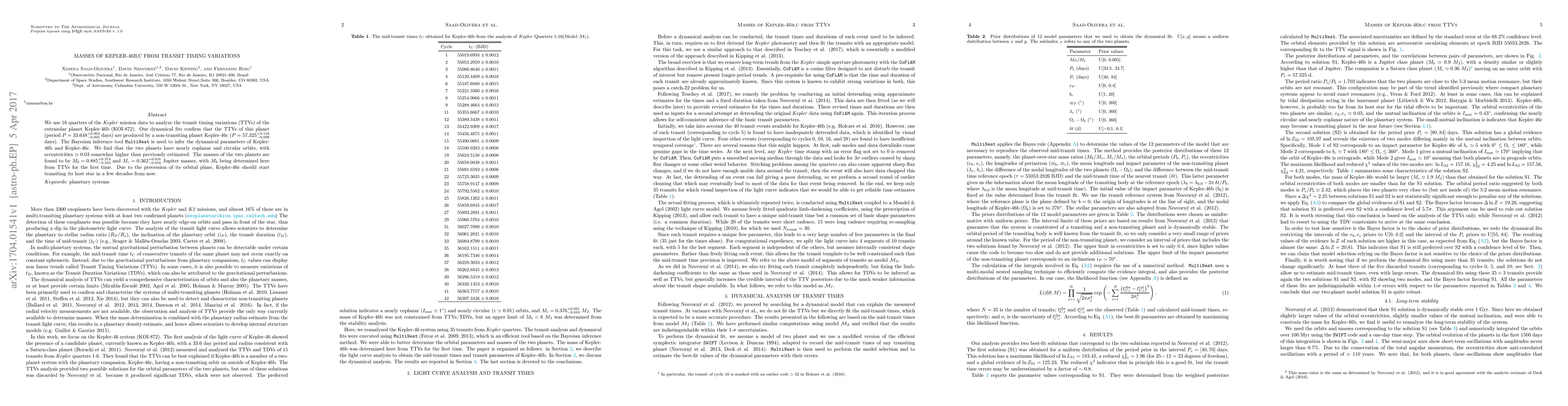 We use 16 quarters of the \textit{Kepler} mission data to analyze the transit timing variations (TTVs) of the extrasolar planet Kepler-46b (KOI-872). Our dynamical fits confirm that the TTVs of this planet (period $P=33.648^{+0.004}_{-0.005}$ days) are produced by a non-transiting planet Kepler-46c ($P=57.325^{+0.116}_{-0.098}$ days). The Bayesian inference tool \texttt{MultiNest} is used to infer the dynamical parameters of Kepler-46b and Kepler-46c. We find that the two planets have nearly coplanar and circular orbits, with eccentricities $\simeq 0.03$ somewhat higher than previously estimated. The masses of the two planets are found to be $M_{b}=0.885^{+0.374}_{-0.343}$ and $M_{c}=0.362^{+0.016}_{-0.016}$ Jupiter masses, with $M_{b}$ being determined here from TTVs for the first time. Due to the precession of its orbital plane, Kepler-46c should start transiting its host star in a few decades from now.