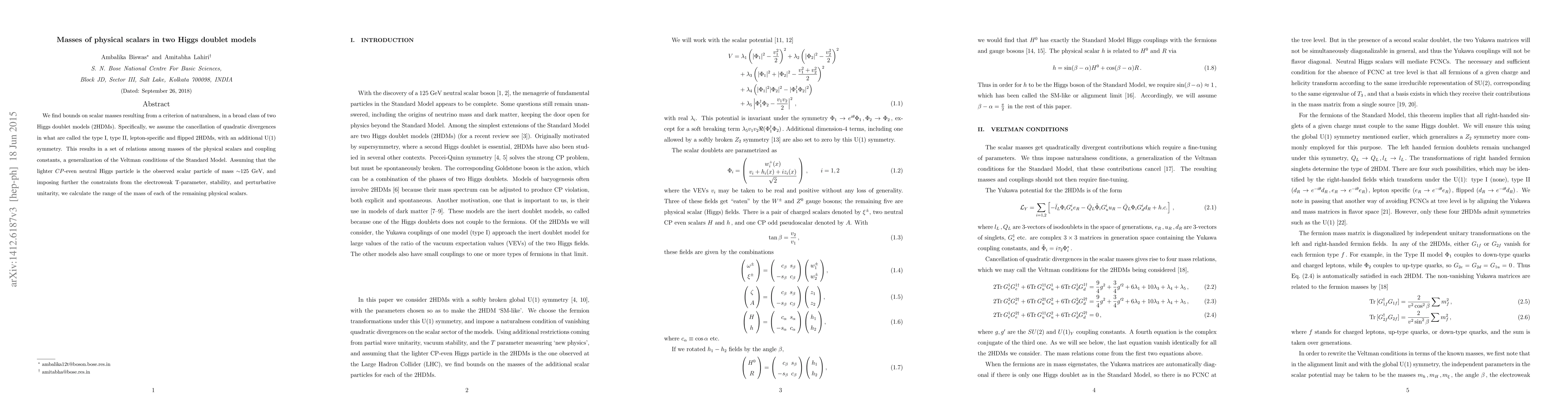 This paper derives bounds on the masses of physical scalars in various two Higgs doublet models (2HDMs) under naturalness criteria, focusing on type I, type II, lepton-specific, and flipped models with an additional U(1) symmetry. It calculates the mass range for each scalar, assuming the observed 125 GeV scalar is the lighter CP-even neutral Higgs and considering constraints from the T-parameter, stability, and perturbative unitarity.
