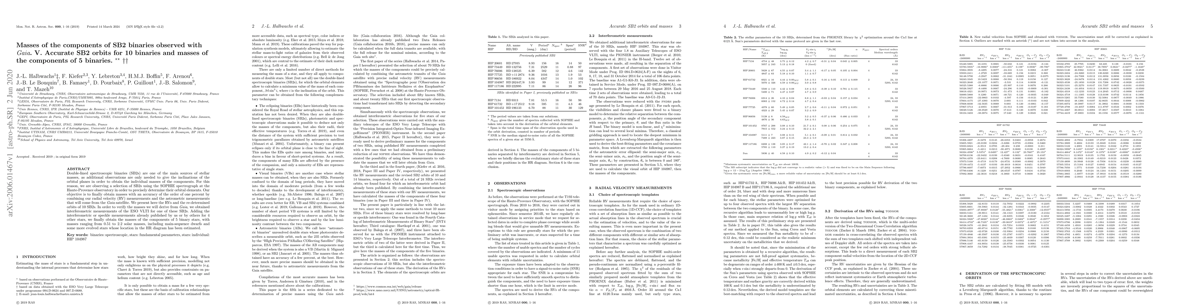This paper presents radial velocity measurements and re-determined orbits for 10 double-lined spectroscopic binaries (SB2s) to determine their masses with high precision. Combining these with Gaia astrometric data, the authors obtain the masses of the components for 5 binaries, ranging from 0.51 to 2.2 solar masses, verifying the method with interferometric observations.