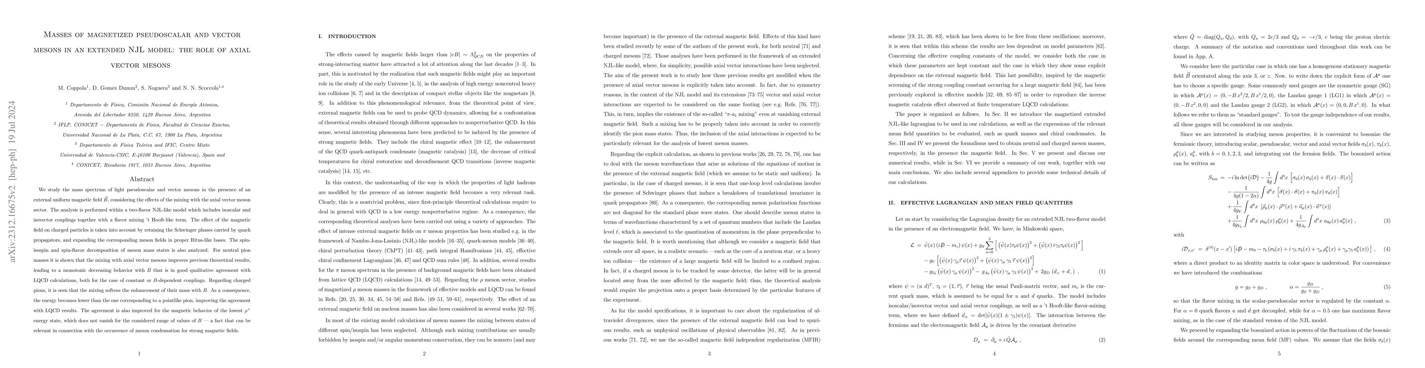 This paper investigates the mass spectrum of light pseudoscalar and vector mesons under a uniform magnetic field, incorporating the effects of axial vector meson mixing within an extended NJL model. The study finds that mixing with axial vector mesons enhances theoretical results, particularly for neutral pions, and improves agreement with lattice QCD calculations.