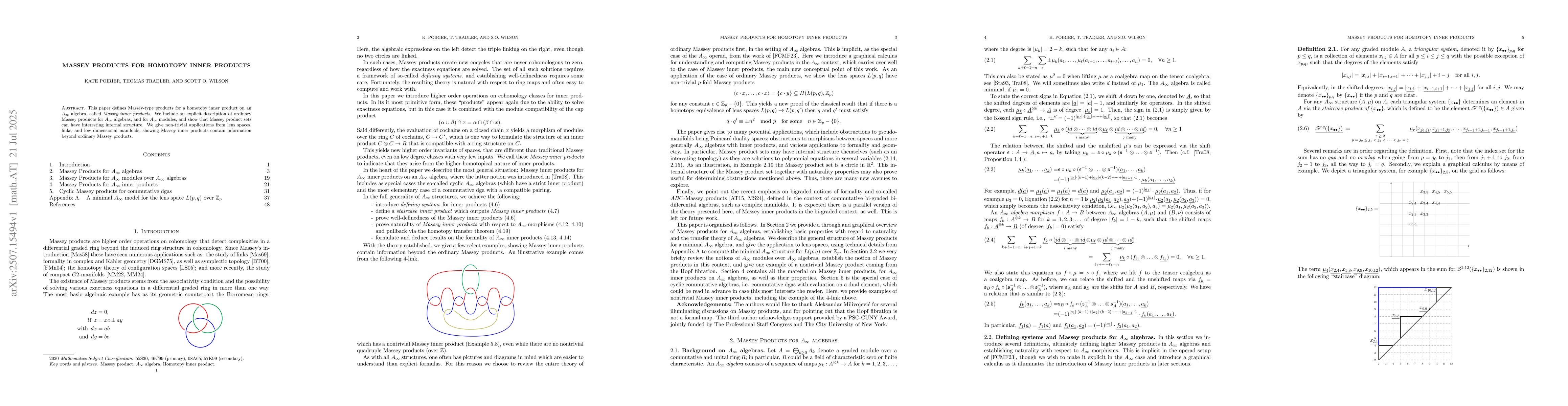 This paper defines Massey-type products for a homotopy inner product on an $A_\infty$ algebra, called Massey inner products. We include an explicit description of ordinary Massey products for $A_\infty$ algebras, and for $A_\infty$ modules, and show that Massey product sets can have interesting internal structure. We give non-trivial applications from lens spaces, links, and low dimensional manifolds, showing Massey inner products contain information beyond ordinary Massey products.
