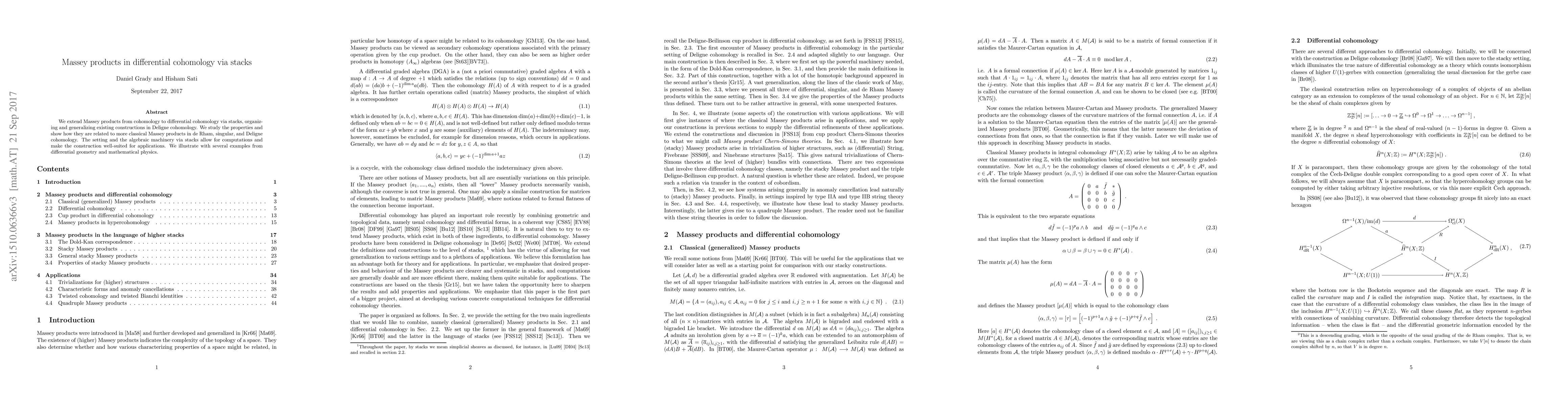 This paper extends Massey products from traditional cohomology to differential cohomology using stacks, providing a generalized framework that relates these to classical Massey products in de Rham and Deligne cohomology. The authors demonstrate the utility of their approach through examples in differential geometry and mathematical physics.