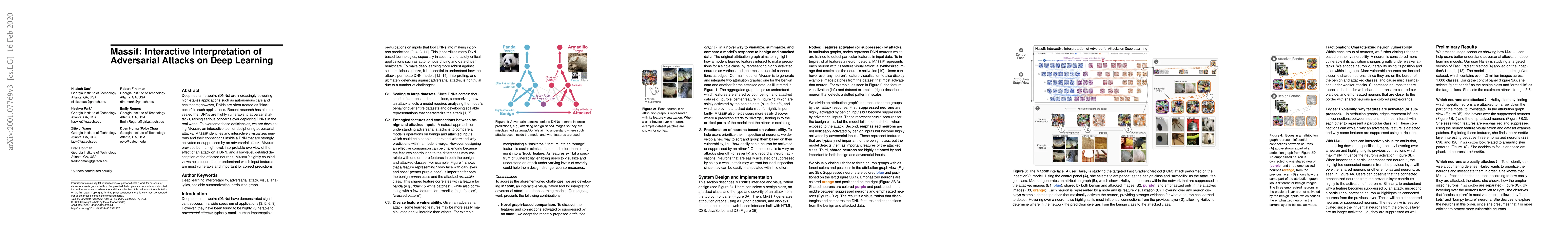 Deep neural networks (DNNs) are increasingly powering high-stakes applications such as autonomous cars and healthcare; however, DNNs are often treated as "black boxes" in such applications. Recent research has also revealed that DNNs are highly vulnerable to adversarial attacks, raising serious concerns over deploying DNNs in the real world. To overcome these deficiencies, we are developing Massif, an interactive tool for deciphering adversarial attacks. Massif identifies and interactively visualizes neurons and their connections inside a DNN that are strongly activated or suppressed by an adversarial attack. Massif provides both a high-level, interpretable overview of the effect of an attack on a DNN, and a low-level, detailed description of the affected neurons. These tightly coupled views in Massif help people better understand which input features are most vulnerable or important for correct predictions.