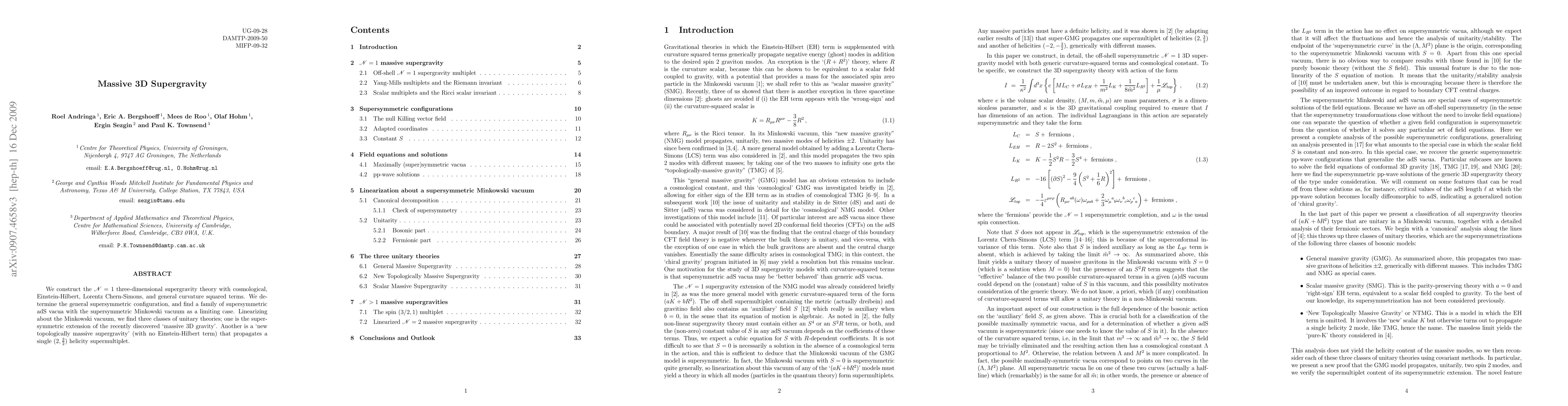 We construct the N=1 three-dimensional supergravity theory with cosmological, Einstein-Hilbert, Lorentz Chern-Simons, and general curvature squared terms. We determine the general supersymmetric configuration, and find a family of supersymmetric adS vacua with the supersymmetric Minkowski vacuum as a limiting case. Linearizing about the Minkowski vacuum, we find three classes of unitary theories; one is the supersymmetric extension of the recently discovered `massive 3D gravity'. Another is a `new topologically massive supergravity' (with no Einstein-Hilbert term) that propagates a single (2,3/2) helicity supermultiplet.