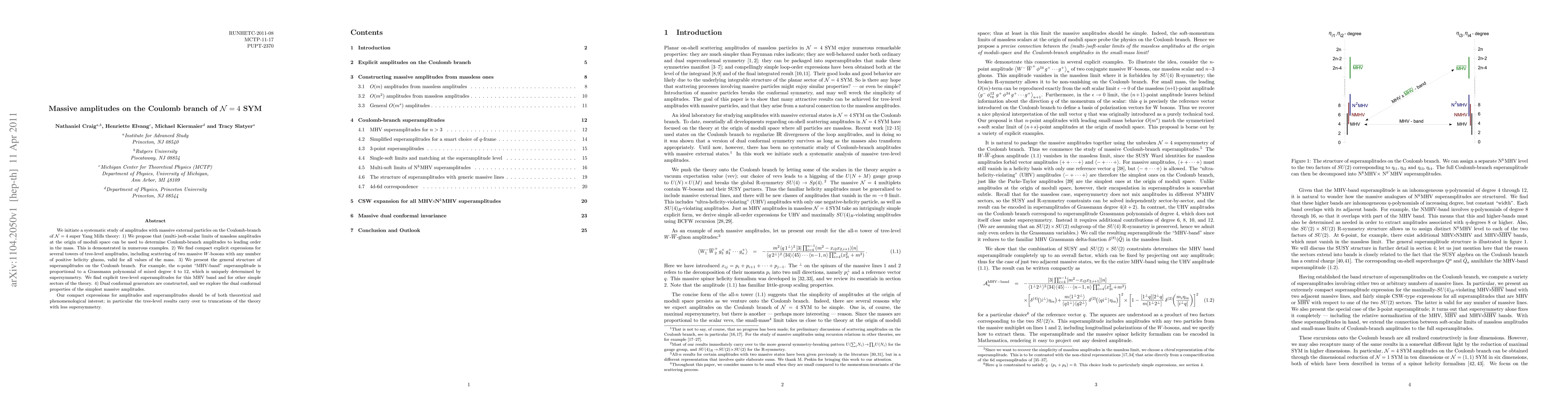 This paper investigates amplitudes in N=4 super Yang-Mills theory with massive particles on the Coulomb branch, proposing that soft-scalar limits of massless amplitudes determine Coulomb-branch amplitudes to leading order in mass. It presents explicit expressions for tree-level amplitudes and introduces a general structure for superamplitudes, which are uniquely determined by supersymmetry.