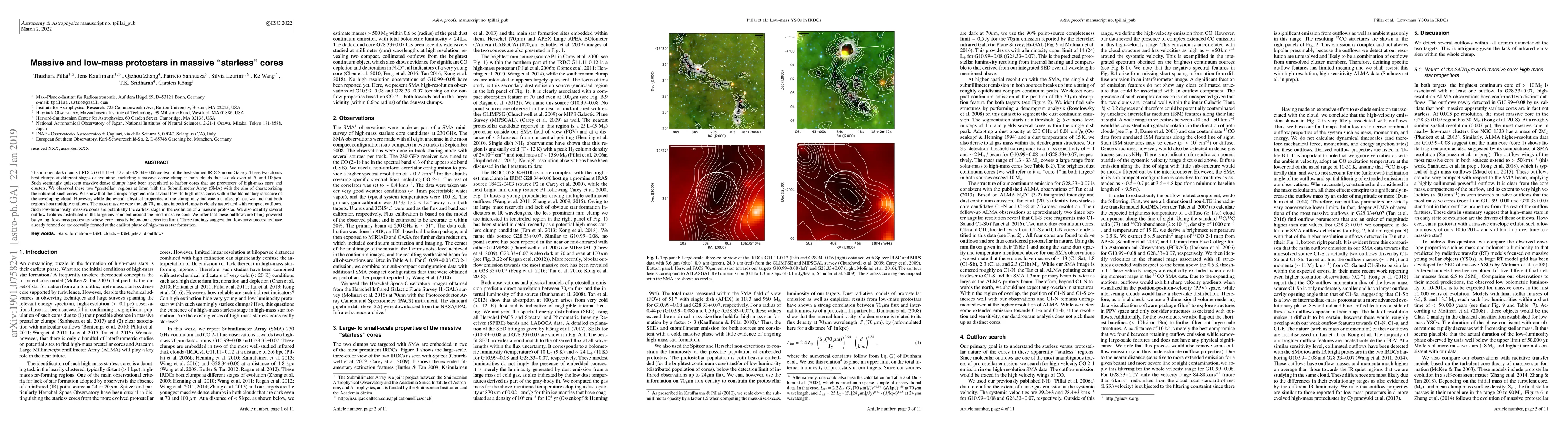 This paper investigates the nature of massive dense clumps in two infrared dark clouds using Submillimeter Array observations, finding that these clumps fragment into low- to high-mass cores. It reveals that while the clumps appear starless, they host multiple outflows, indicating the presence of low-mass protostars, suggesting that low-mass protostars form coevally or even precede high-mass star formation.