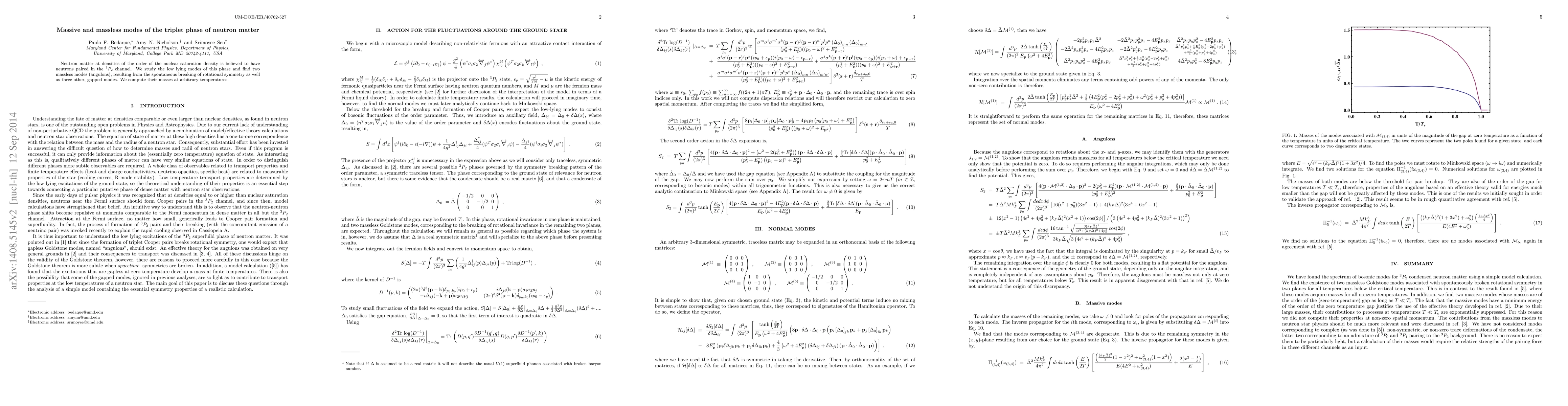 Researchers found two massless modes (angulons) in neutron matter at nuclear saturation density, resulting from the spontaneous breaking of rotational symmetry, alongside three gapped modes.
