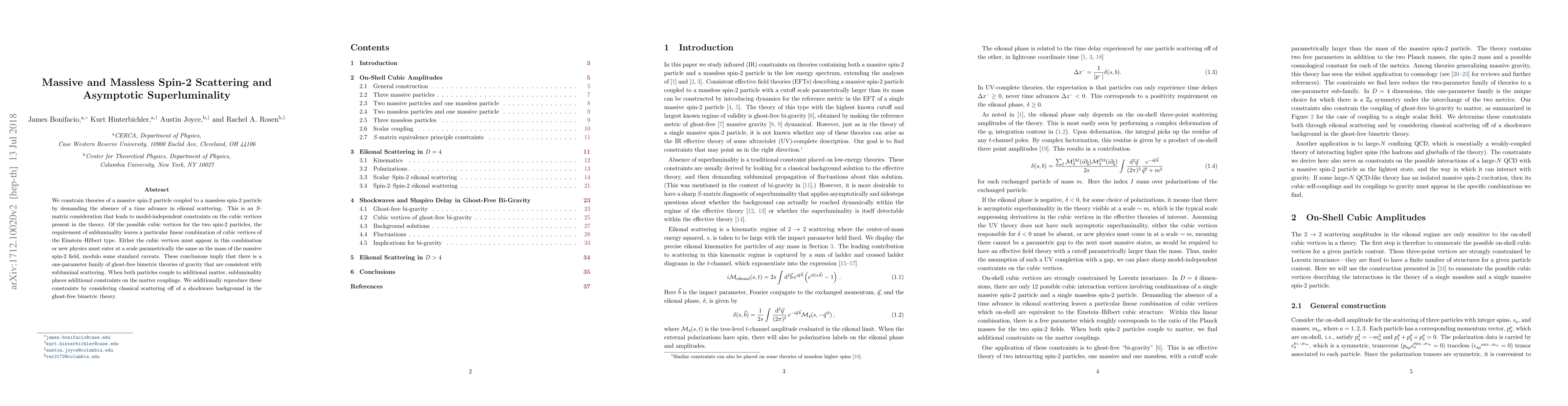 This paper constrains theories involving a massive and a massless spin-2 particle, finding that subluminal scattering necessitates a specific linear combination of Einstein-Hilbert type cubic vertices or new physics at a scale comparable to the mass of the massive spin-2 field. It also identifies a family of ghost-free bimetric gravity theories consistent with these constraints.