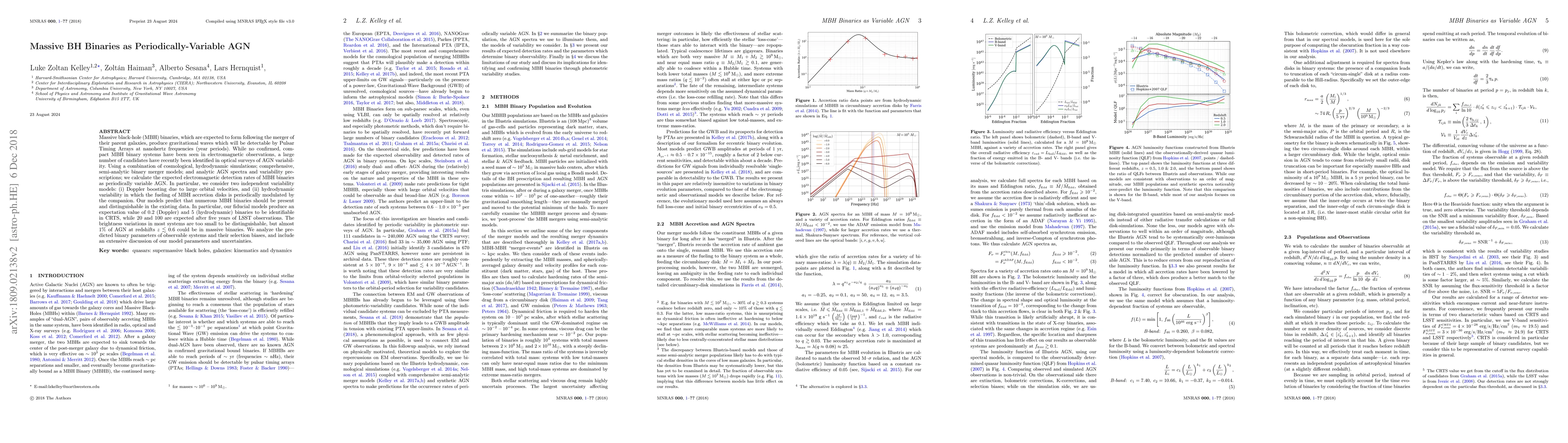 Massive black-hole (MBH) binaries, which are expected to form following the merger of their parent galaxies, produce gravitational waves which will be detectable by Pulsar Timing Arrays at nanohertz frequencies (year periods). While no confirmed, compact MBH binary systems have been seen in electromagnetic observations, a large number of candidates have recently been identified in optical surveys of AGN variability. Using a combination of cosmological, hydrodynamic simulations; comprehensive, semi-analytic binary merger models; and analytic AGN spectra and variability prescriptions; we calculate the expected electromagnetic detection rates of MBH binaries as periodically variable AGN. In particular, we consider two independent variability models: (i) Doppler boosting due to large orbital velocities, and (ii) hydrodynamic variability in which the fueling of MBH accretion disks is periodically modulated by the companion. Our models predict that numerous MBH binaries should be present and distinguishable in the existing data. In particular, our fiducial models produce an expectation value of $0.2$ (Doppler) and $5$ (hydrodynamic) binaries to be identifiable in CRTS, while $20$ and $100$ are expected after five years of LSST observations. The brightness variations in most systems are too small to be distinguishable, but almost $1\%$ of AGN at redshifts $z \lesssim 0.6$ could be in massive binaries. We analyze the predicted binary parameters of observable systems and their selection biases, and include an extensive discussion of our model parameters and uncertainties.