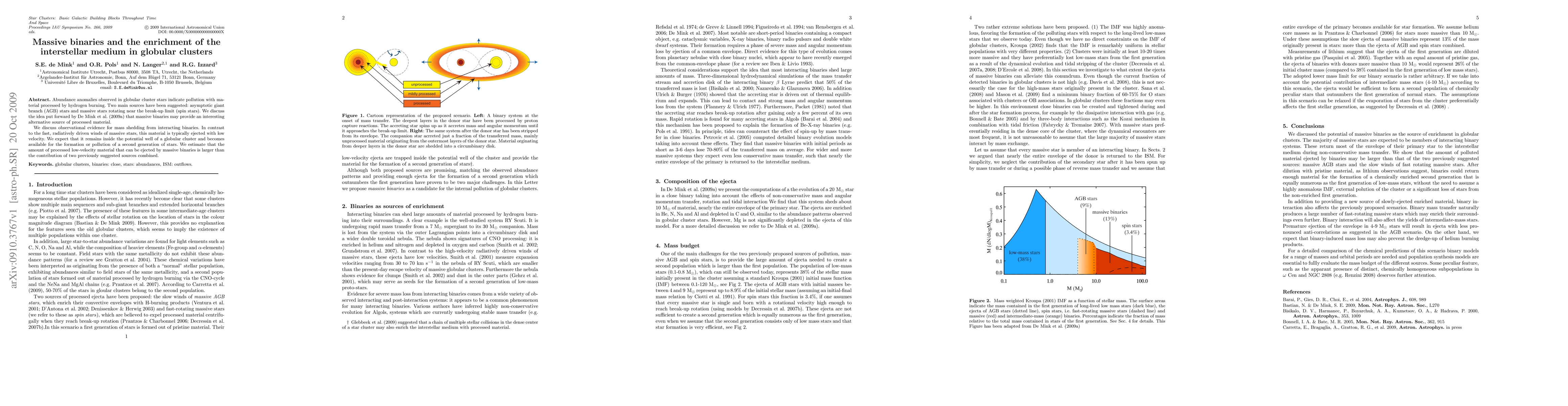 This paper explores massive binaries in globular clusters as a significant source of processed material enriching the interstellar medium, contrasting their low-velocity mass ejection with the fast winds of massive stars. The study finds that the processed material from binaries is likely to remain within the cluster, potentially forming or polluting second-generation stars, and suggests that this contribution may exceed that from other sources.