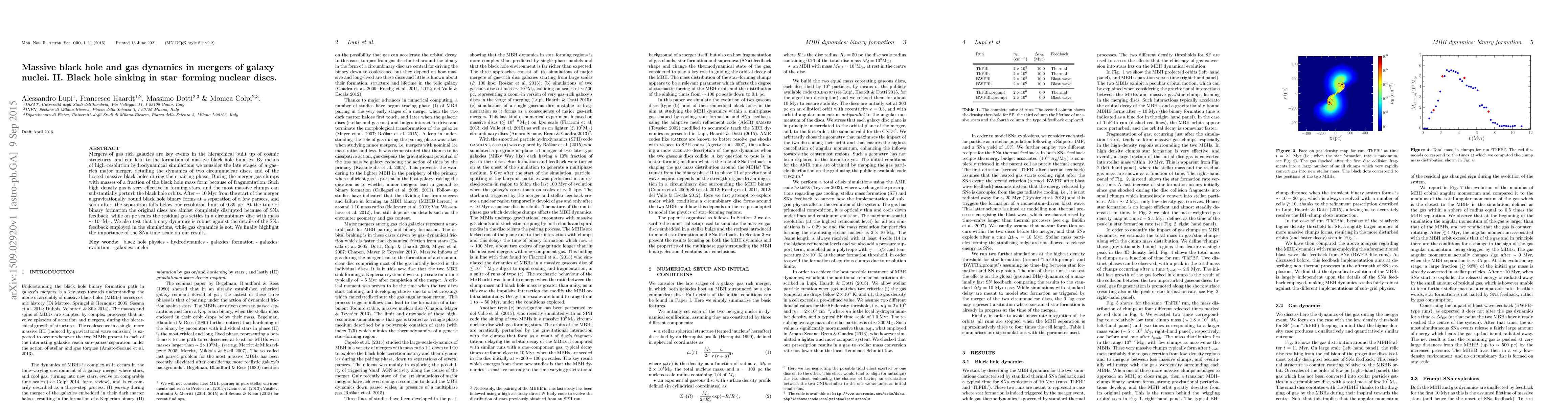 This paper investigates the dynamics of massive black holes and gas during the late stages of gas-rich galaxy mergers, showing that star-forming nuclear discs form massive gas clumps that perturb black hole orbits, leading to the formation of a gravitationally bound black hole binary within $\sim 10$ Myr. The original discs are disrupted by supernova feedback, while residual gas forms a circumbinary disc.