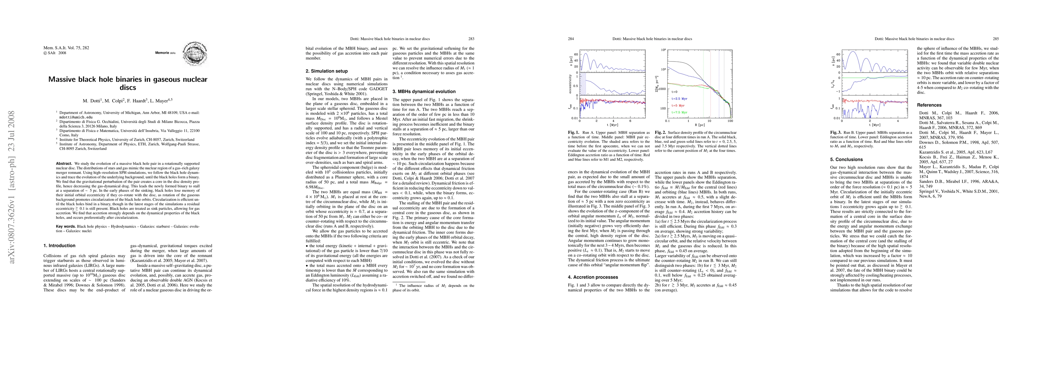 This study uses high-resolution simulations to track the evolution of a massive black hole pair within a gaseous nuclear disc, finding that the black holes form a binary and stall at ~5 pc due to reduced gas-dynamical drag. The black hole orbits circularize as they co-rotate with the disc, though residual eccentricity remains post-binary formation.