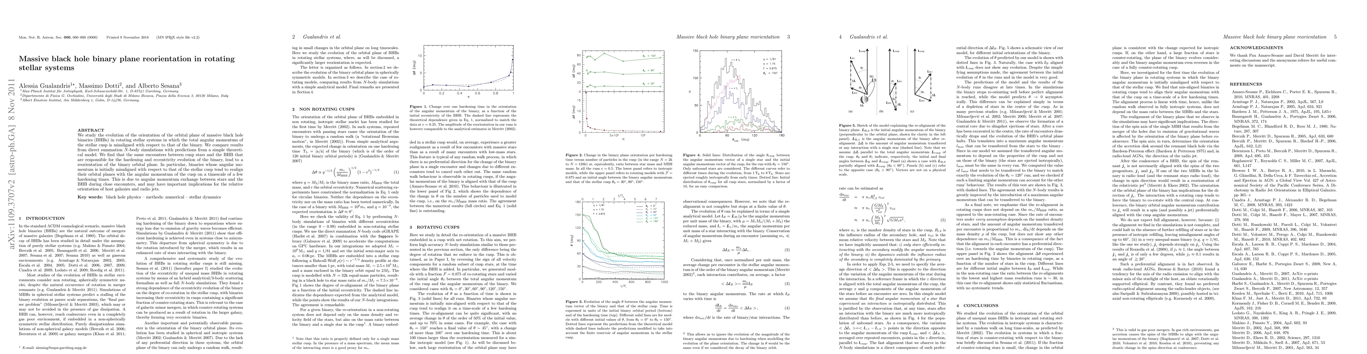 This paper investigates how the orbital plane of massive black hole binaries reorients in rotating stellar systems where the stellar cusp's angular momentum differs from that of the binary. The study shows that encounters between cusp stars and the binary cause the binary's orbital plane to realign with the cusp's angular momentum over a few hardening times, which may impact the orientation of host galaxies and radio jets.