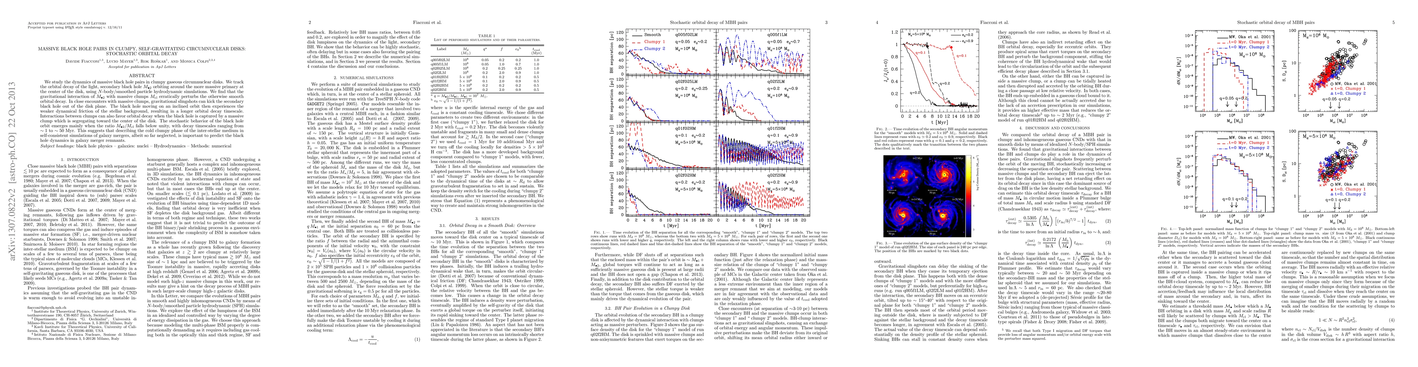 We study the dynamics of massive black hole pairs in clumpy gaseous circumnuclear disks. We track the orbital decay of the light, secondary black hole $M_{\bullet2}$ orbiting around the more massive primary at the center of the disk, using $N$-body/smoothed particle hydrodynamic simulations. We find that the gravitational interaction of $M_{\bullet2}$ with massive clumps $M_{\rm cl}$ erratically perturbs the otherwise smooth orbital decay. In close encounters with massive clumps, gravitational slingshots can kick the secondary black hole out of the disk plane. The black hole moving on an inclined orbit then experiences the weaker dynamical friction of the stellar background, resulting in a longer orbital decay timescale. Interactions between clumps can also favor orbital decay when the black hole is captured by a massive clump which is segregating toward the center of the disk. The stochastic behavior of the black hole orbit emerges mainly when the ratio $M_{\bullet2}/M_{\rm cl}$ falls below unity, with decay timescales ranging from $\sim1$ to $\sim50$ Myr. This suggests that describing the cold clumpy phase of the inter-stellar medium in self-consistent simulations of galaxy mergers, albeit so far neglected, is important to predict the black hole dynamics in galaxy merger remnants.