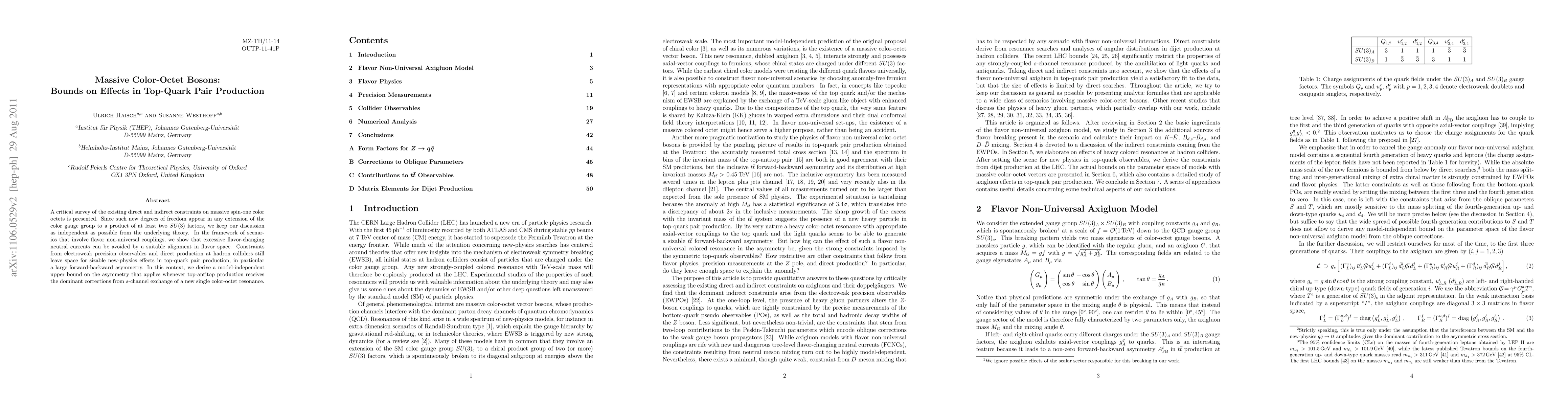 Researchers explore bounds on massive color-octet bosons in top-quark pair production, finding potential for large forward-backward asymmetry while avoiding excessive flavor-changing neutral currents.