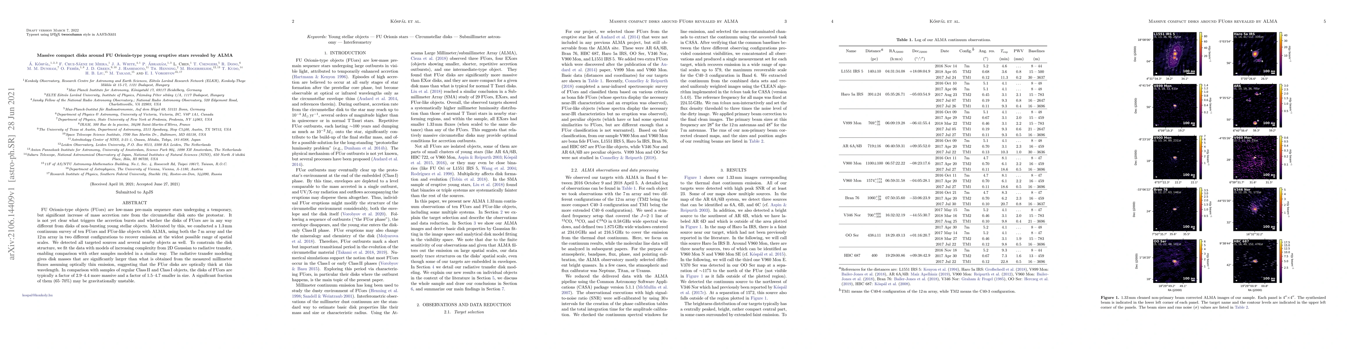 FU Orionis-type objects (FUors) are low-mass pre-main sequence stars undergoing a temporary, but significant increase of mass accretion rate from the circumstellar disk onto the protostar. It is not yet clear what triggers the accretion bursts and whether the disks of FUors are in any way different from disks of non-bursting young stellar objects. Motivated by this, we conducted a 1.3 mm continuum survey of ten FUors and FUor-like objects with ALMA, using both the 7 m array and the 12 m array in two different configurations to recover emission at the widest possible range of spatial scales. We detected all targeted sources and several nearby objects as well. To constrain the disk structure, we fit the data with models of increasing complexity from 2D Gaussian to radiative transfer, enabling comparison with other samples modeled in a similar way. The radiative transfer modeling gives disk masses that are significantly larger than what is obtained from the measured millimeter fluxes assuming optically thin emission, suggesting that the FUor disks are optically thick at this wavelength. In comparison with samples of regular Class II and Class I objects, the disks of FUors are typically a factor of 2.9-4.4 more massive and a factor of 1.5-4.7 smaller in size. A significant fraction of them (65-70%) may be gravitationally unstable.