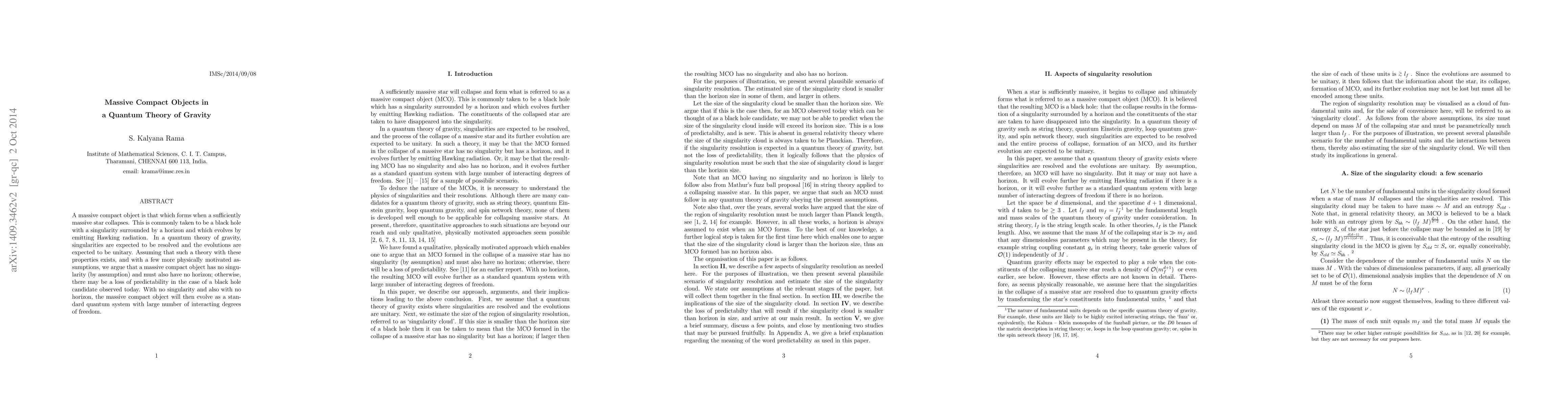 A massive compact object in a quantum theory of gravity is expected to have no singularity and no horizon, making its evolution predictable and similar to a standard quantum system.