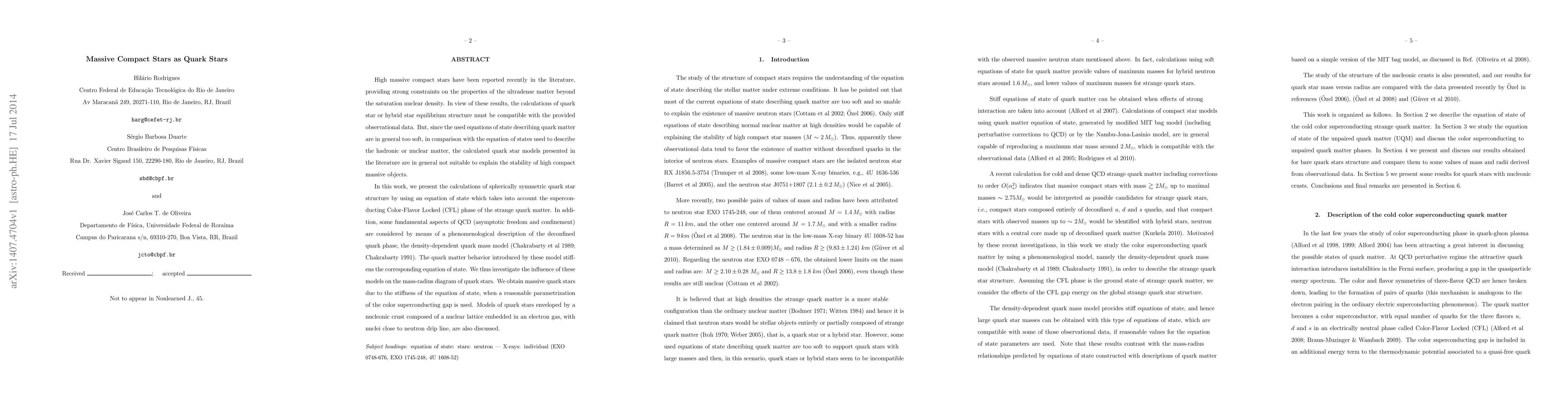High massive compact stars have been reported recently in the literature, providing strong constraints on the properties of the ultradense matter beyond the saturation nuclear density. In view of these results, the calculations of quark star or hybrid star equilibrium structure must be compatible with the provided observational data. But, since the used equations of state describing quark matter are in general too soft, in comparison with the equation of states used to describe the hadronic or nuclear matter, the calculated quark star models presented in the literature are in general not suitable to explain the stability of high compact massive objects.