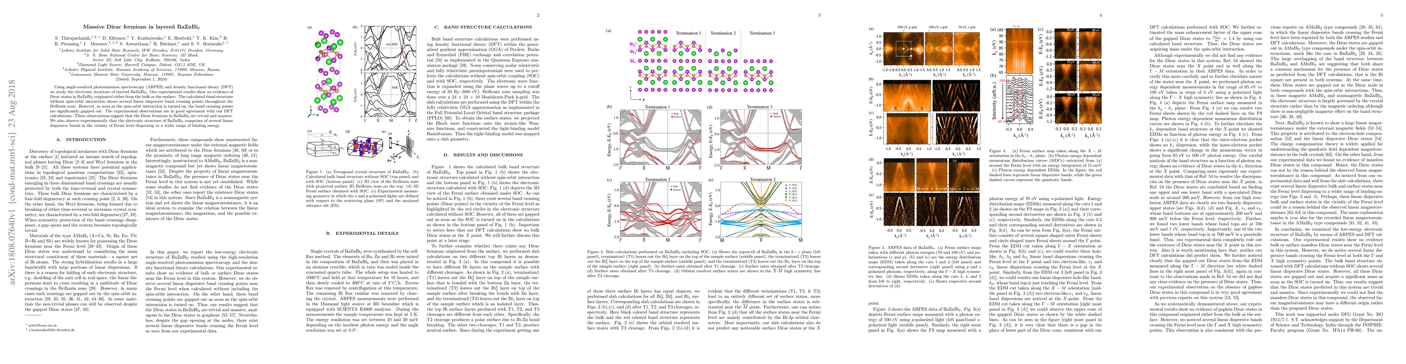 Researchers found no evidence of Dirac fermions in BaZnBi$_2$, a layered material, using ARPES and DFT calculations. Instead, they observed massive, trivial fermions with linear dispersive bands near the Fermi level.