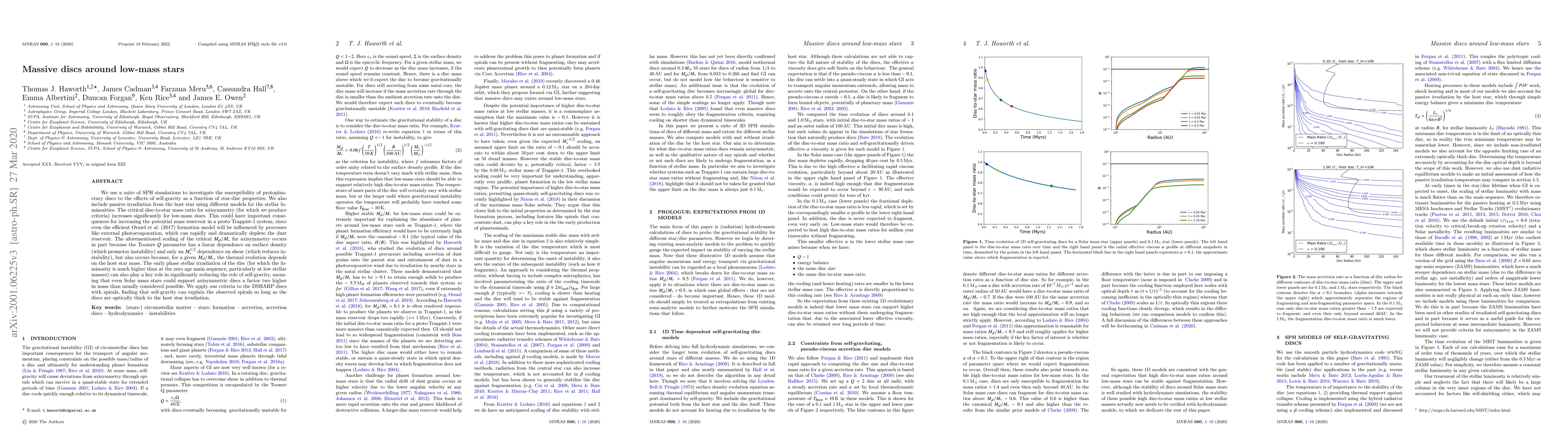 We use a suite of SPH simulations to investigate the susceptibility of protoplanetary discs to the effects of self-gravity as a function of star-disc properties. We also include passive irradiation from the host star using different models for the stellar luminosities. The critical disc-to-star mass ratio for axisymmetry (for which we produce criteria) increases significantly for low-mass stars. This could have important consequences for increasing the potential mass reservoir in a proto Trappist-1 system, since even the efficient Ormel et al. (2017) formation model will be influenced by processes like external photoevaporation, which can rapidly and dramatically deplete the dust reservoir. The aforementioned scaling of the critical $M_d/M_*$ for axisymmetry occurs in part because the Toomre $Q$ parameter has a linear dependence on surface density (which promotes instability) and only an $M_*^{1/2}$ dependence on shear (which reduces instability), but also occurs because, for a given $M_d/M_*$, the thermal evolution depends on the host star mass. The early phase stellar irradiation of the disc (for which the luminosity is much higher than at the zero age main sequence, particularly at low stellar masses) can also play a key role in significantly reducing the role of self-gravity, meaning that even Solar mass stars could support axisymmetric discs a factor two higher in mass than usually considered possible. We apply our criteria to the DSHARP discs with spirals, finding that self-gravity can explain the observed spirals so long as the discs are optically thick to the host star irradiation.