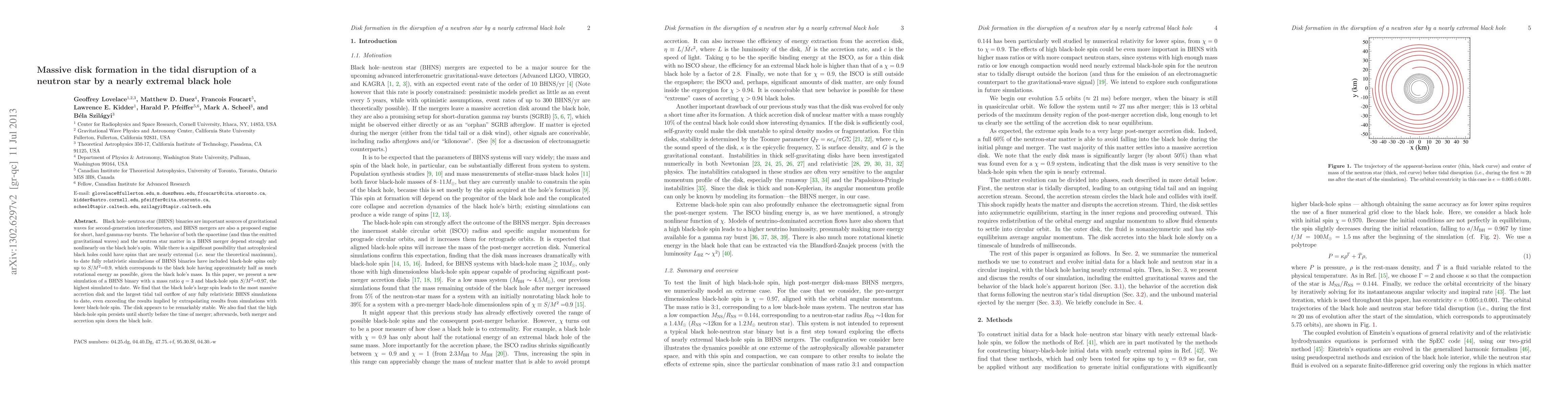 Black hole-neutron star (BHNS) binaries are important sources of gravitational waves for second-generation interferometers, and BHNS mergers are also a proposed engine for short, hard gamma-ray bursts. The behavior of both the spacetime (and thus the emitted gravitational waves) and the neutron star matter in a BHNS merger depend strongly and nonlinearly on the black hole's spin. While there is a significant possibility that astrophysical black holes could have spins that are nearly extremal (i.e. near the theoretical maximum), to date fully relativistic simulations of BHNS binaries have included black-hole spins only up to $S/M^2$=0.9, which corresponds to the black hole having approximately half as much rotational energy as possible, given the black hole's mass. In this paper, we present a new simulation of a BHNS binary with a mass ratio $q=3$ and black-hole spin $S/M^2$=0.97, the highest simulated to date. We find that the black hole's large spin leads to the most massive accretion disk and the largest tidal tail outflow of any fully relativistic BHNS simulations to date, even exceeding the results implied by extrapolating results from simulations with lower black-hole spin. The disk appears to be remarkably stable. We also find that the high black-hole spin persists until shortly before the time of merger; afterwards, both merger and accretion spin down the black hole.