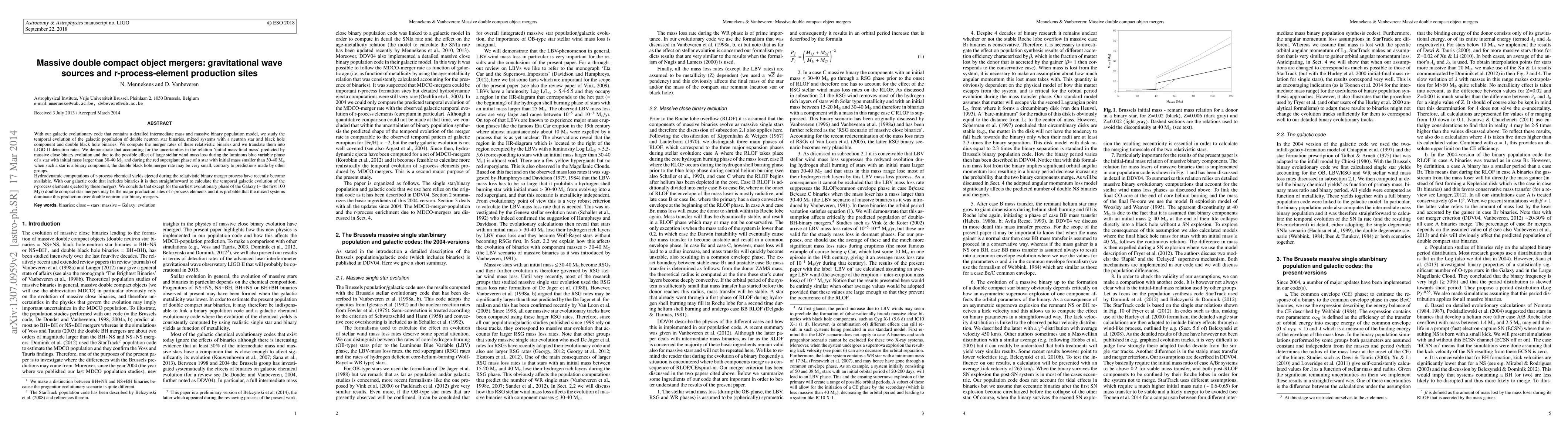 With our galactic evolutionary code that contains a detailed intermediate mass and massive binary population model, we study the temporal evolution of the galactic population of double neutron star binaries, mixed systems with a neutron star and black hole component and double black hole binaries. We compute the merger rates of these relativistic binaries and we translate them into LIGO II detection rates. We demonstrate that accounting for the uncertainties in the relation 'initial mass-final mass' predicted by massive close binary evolution and due to the possible effect of large stellar wind mass loss during the luminous blue variable phase of a star with initial mass larger than 30-40 Mo and during the red supergiant phase of a star with initial mass smaller than 30-40 Mo when such a star is a binary component, the double black hole merger rate may be very small, contrary to predictions made by other groups. Hydrodynamic computations of r-process chemical yields ejected during the relativistic binary merger process have recently become available. With our galactic code that includes binaries it is then straightforward to calculate the temporal galactic evolution of the r-process elements ejected by these mergers. We conclude that except for the earliest evolutionary phase of the Galaxy (~the first 100 Myr) double compact star mergers may be the major production sites of r-process elements and it is probable that the mixed systems dominate this production over double neutron star binary mergers.