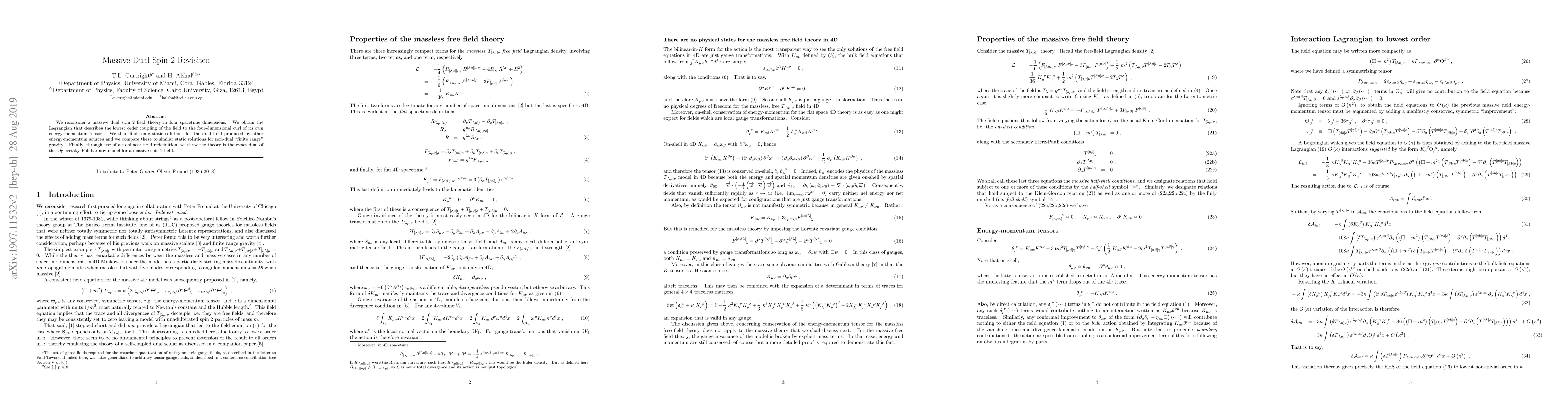 This paper revisits a massive dual spin 2 field theory in four dimensions, deriving the Lagrangian for its lowest order coupling to the curl of its energy-momentum tensor. It also demonstrates the theory's equivalence to the Ogievetsky-Polubarinov model via a nonlinear field redefinition.