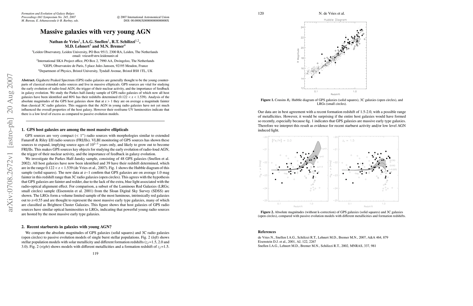 Gigahertz Peaked Spectrum (GPS) radio galaxies are generally thought to be the young counterparts of classical extended radio sources and live in massive ellipticals. GPS sources are vital for studying the early evolution of radio-loud AGN, the trigger of their nuclear activity, and the importance of feedback in galaxy evolution. We study the Parkes half-Jansky sample of GPS radio galaxies of which now all host galaxies have been identified and 80% has their redshifts determined (0.122 < z < 1.539). Analysis of the absolute magnitudes of the GPS host galaxies show that at z > 1 they are on average a magnitude fainter than classical 3C radio galaxies. This suggests that the AGN in young radio galaxies have not yet much influenced the overall properties of the host galaxy. However their restframe UV luminosities indicate that there is a low level of excess as compared to passive evolution models.