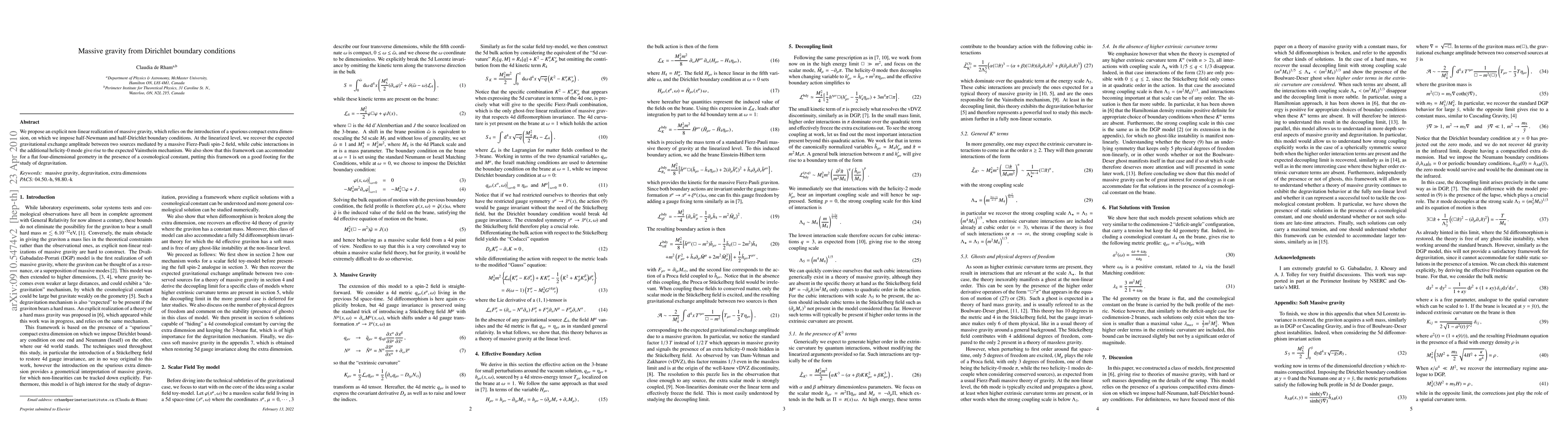 The research proposes an explicit non-linear realization of massive gravity using Dirichlet boundary conditions.