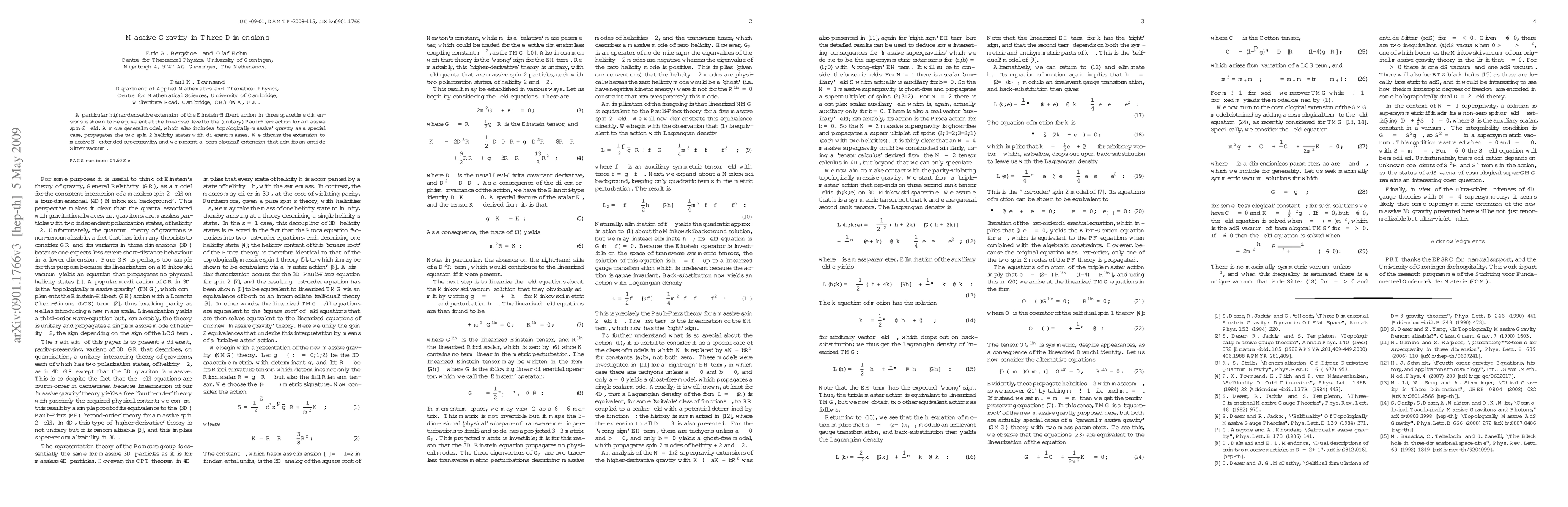 A particular higher-derivative extension of the Einstein-Hilbert action in three spacetime dimensions is shown to be equivalent at the linearized level to the (unitary) Pauli-Fierz action for a massive spin-2 field. A more general model, which also includes `topologically-massive' gravity as a special case, propagates the two spin 2 helicity states with different masses. We discuss the extension to massive ${\cal N}$-extended supergravity, and we present a `cosmological' extension that admits an anti-de Sitter vacuum.