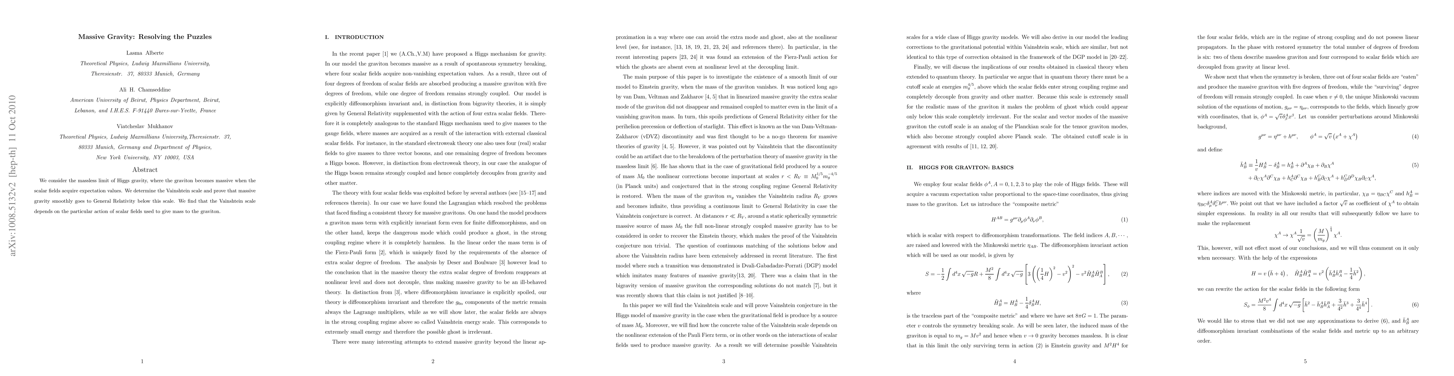 We consider the massless limit of Higgs gravity, where the graviton becomes massive when the scalar fields acquire expectation values. We determine the Vainshtein scale and prove that massive gravity smoothly goes to General Relativity below this scale. We find that the Vainshtein scale depends on the particular action of scalar fields used to give mass to the graviton.