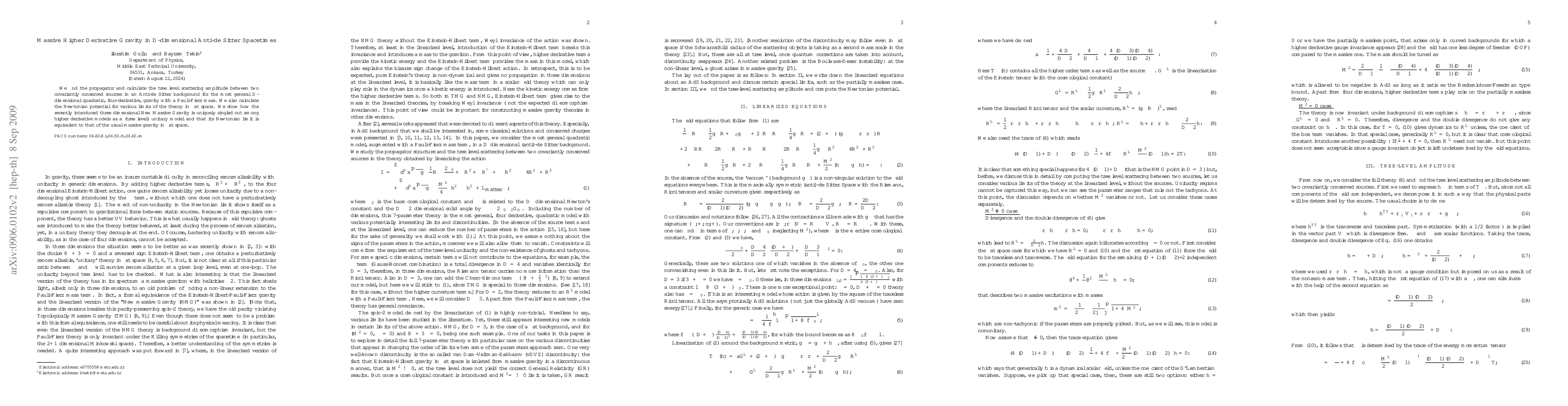 This paper investigates the propagator and scattering amplitudes in D-dimensional Anti-de Sitter spacetimes for the most general quadratic, four-derivative gravity model with a Pauli-Fierz mass. It also examines the Newtonian potential in flat space and identifies the three-dimensional New Massive Gravity as the unique unitary model among higher derivative theories.