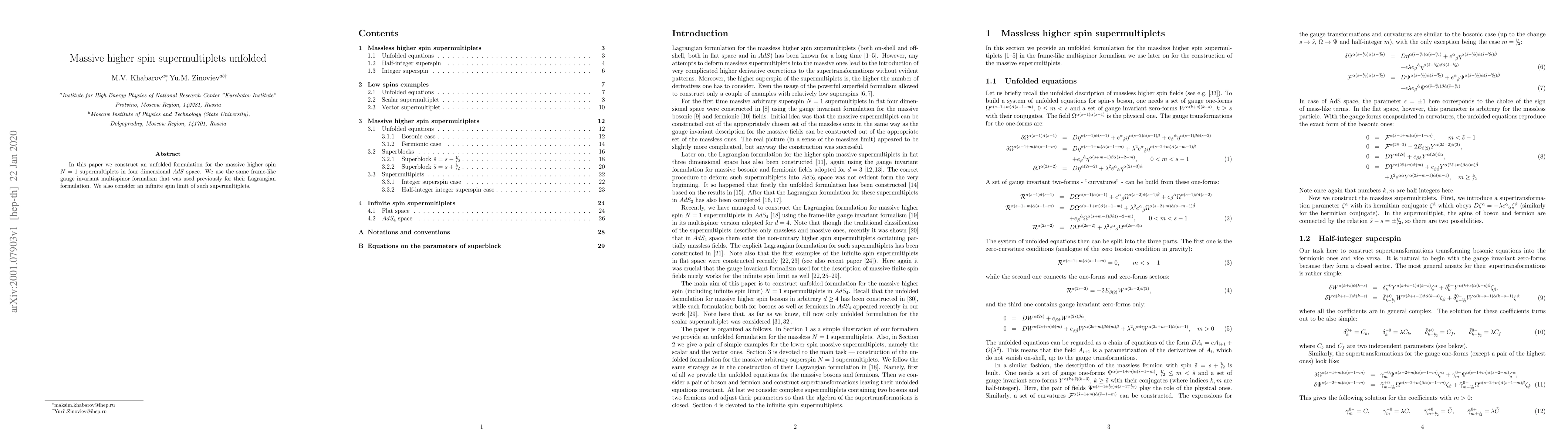 This paper develops an unfolded formulation for massive higher spin N=1 supermultiplets in four-dimensional AdS space, employing a frame-like gauge invariant multispinor formalism. Additionally, it explores the infinite spin limit of these supermultiplets.