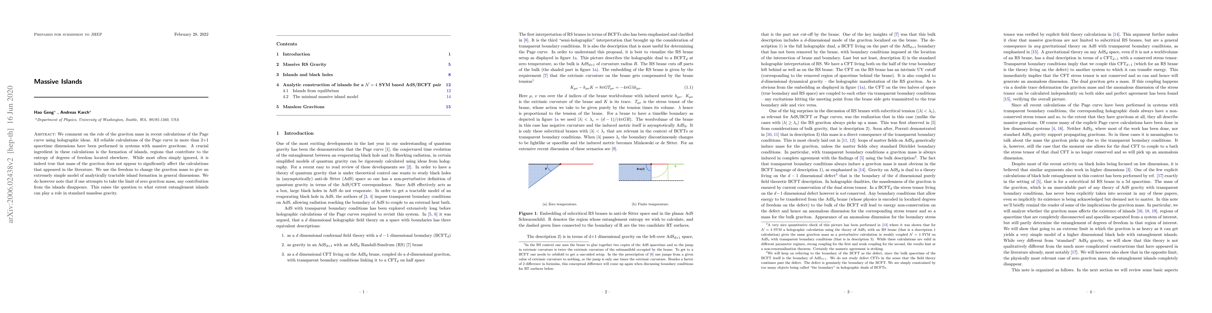 We comment on the role of the graviton mass in recent calculations of the Page curve using holographic ideas. All reliable calculations of the Page curve in more than 2+1 spacetime dimensions have been performed in systems with massive gravitons. A crucial ingredient in these calculations is the formation of islands, regions that contribute to the entropy of degrees of freedom located elsewhere. While most often simply ignored, it is indeed true that mass of the graviton does not appear to significantly affect the calculations that appeared in the literature. We use the freedom to change the graviton mass to give an extremely simple model of analytically tractable island formation in general dimensions. We do however note that if one attempts to take the limit of zero graviton mass, any contribution from the islands disappears. This raises the question to what extent entanglement islands can play a role in standard massless gravity.