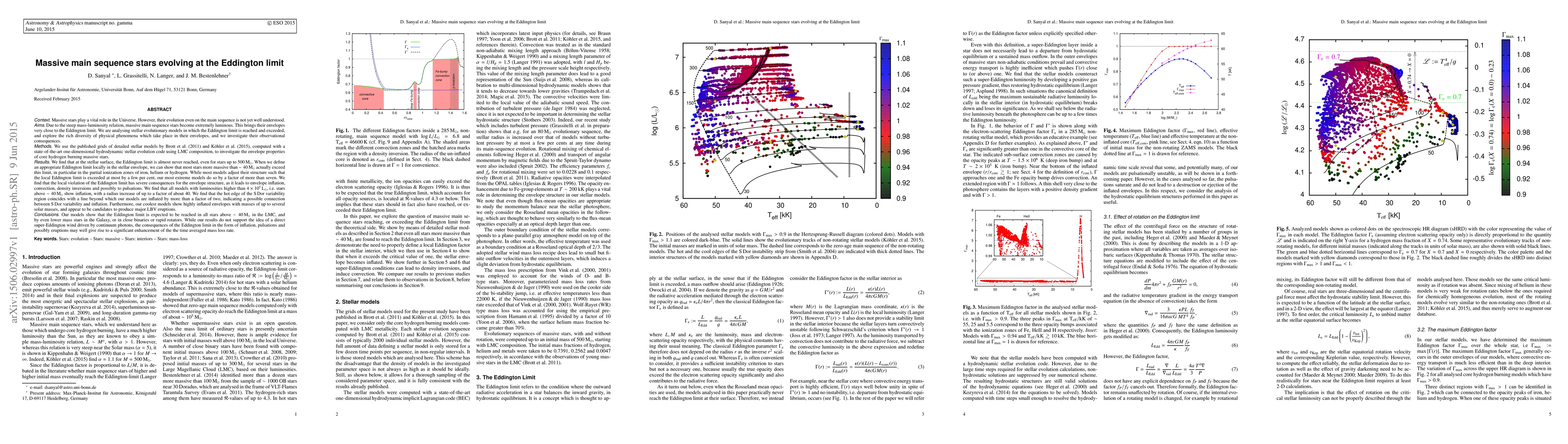 The evolution of massive stars even on the main sequence is not yet well understood. Due to the steep mass-luminosity relation, massive main sequence stars become very luminous. This brings their envelopes very close to the Eddington limit. We are analysing stellar evolutionary models in which the Eddington limit is reached and exceeded, and explore the rich diversity of physical phenomena which take place in their envelopes, and investigate their observational consequences. We use the grids of detailed stellar models by Brott et al. (2011) and Koehler et al. (2015), to investigate the envelope properties of core hydrogen burning massive stars. We find that at the stellar surface, the Eddington limit is almost never reached, even for stars up to 500 Msun. When an appropriate Eddington limit is defined locally in the stellar envelope, most stars more massive than 40 Msun actually exceed this limit, in particular in the partial ionization zones of iron, helium or hydrogen. While most models adjust their structure such that the local Eddington limit is exceeded at most by a few per cent, our most extreme models do so by a factor of more than seven. We find that the local violation of the Eddington limit has severe consequences for the envelope structure, as it leads to envelope inflation, convection, density inversions and possibly to pulsations. We find that all models with luminosities higher than 4*10^5 Lsun i.e. stars above 40 Msun show inflation, with a radius increase of up to a factor of about 40. We find that the hot edge of the S Dor variability region coincides with a line beyond which our models are inflated by more than a factor of two, indicating a possible connection between S Dor variability and inflation. Furthermore, our coolest models show highly inflated envelopes with masses of up to several solar masses, and appear to be candidates to produce major LBV eruptions.