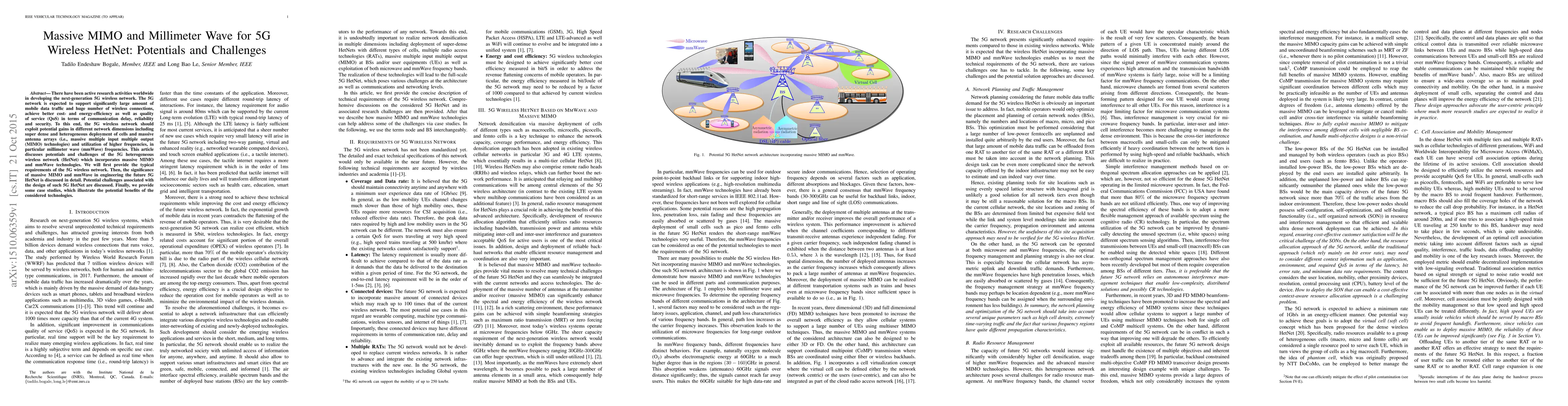This paper explores the potentials and challenges of integrating massive MIMO and millimeter wave technologies in 5G heterogeneous wireless networks (HetNet). It highlights the benefits of these technologies in meeting the future demands for high data traffic, cost-efficiency, and improved QoS, while also addressing the associated design challenges.