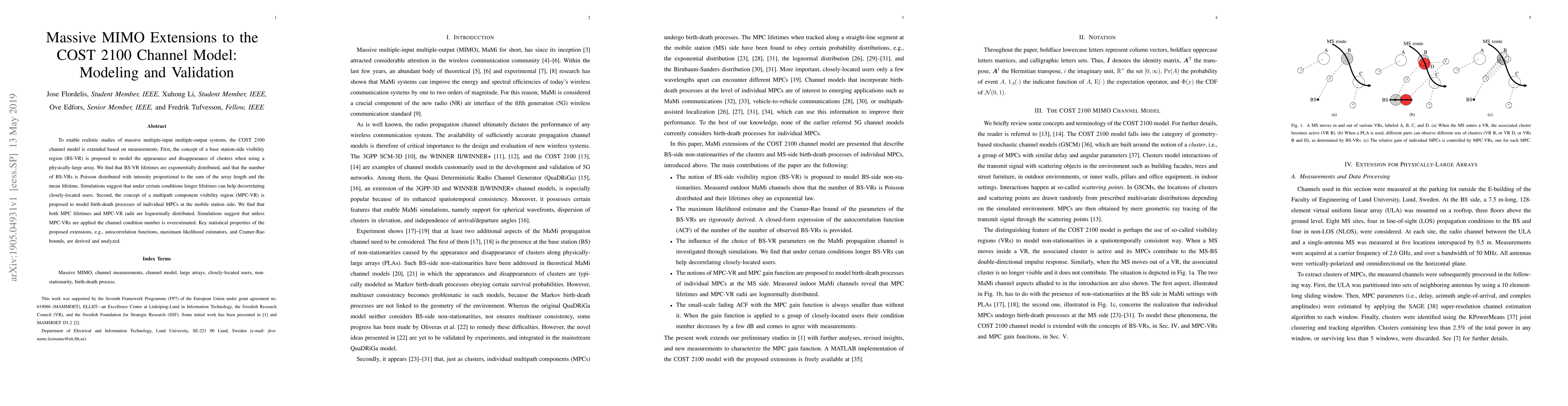 Research extends the COST 2100 channel model with new concepts for modeling base station-side visibility regions and multipath component visibility regions, finding that these regions have lognormally distributed lifetimes and radii.