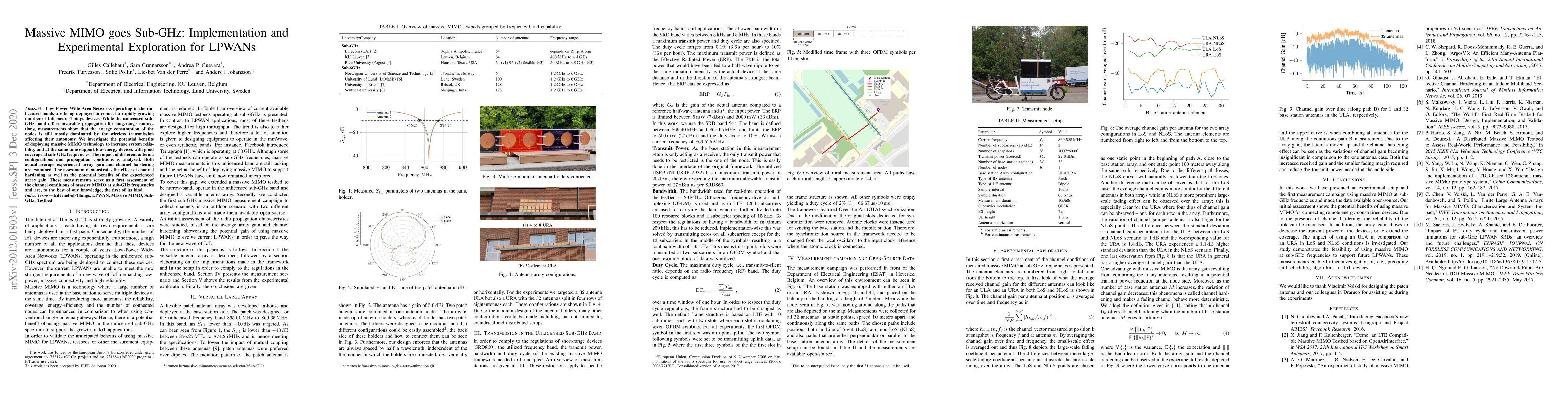 This paper explores the implementation of massive MIMO in Low-Power Wide-Area Networks (LPWANs) operating at sub-GHz frequencies to enhance coverage and reduce energy consumption. The study investigates the benefits of different antenna configurations and assesses the impact of channel hardening and experienced array gain, providing initial insights into massive MIMO's performance at sub-GHz.