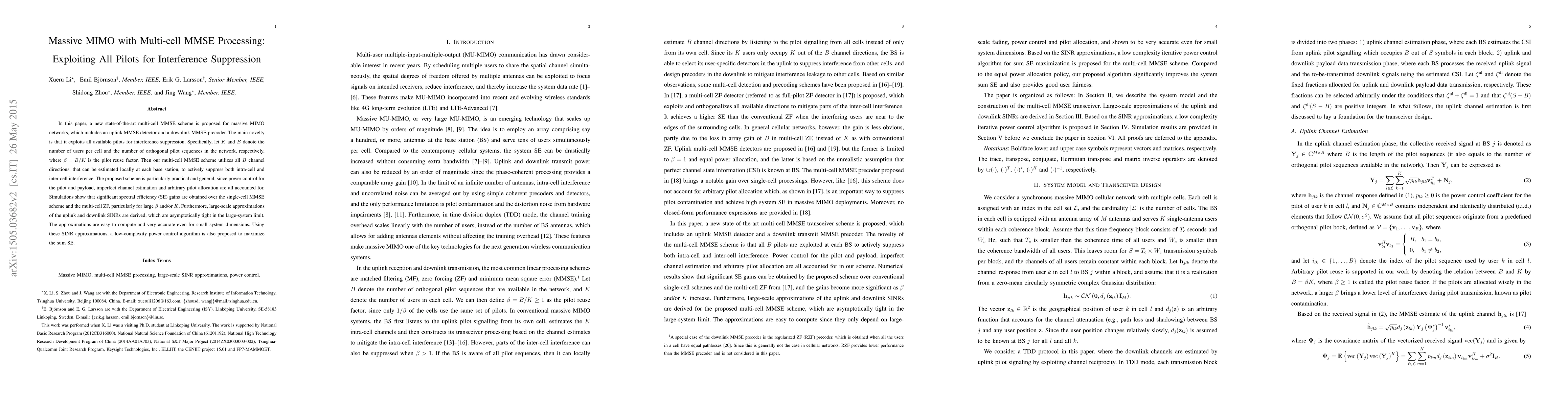 This paper proposes a novel multi-cell MMSE scheme for massive MIMO networks that leverages all available pilots for interference suppression, achieving significant spectral efficiency gains over single-cell MMSE and multi-cell ZF, especially for large pilot reuse factors and user numbers. The method accounts for practical factors like power control and imperfect channel estimation.
