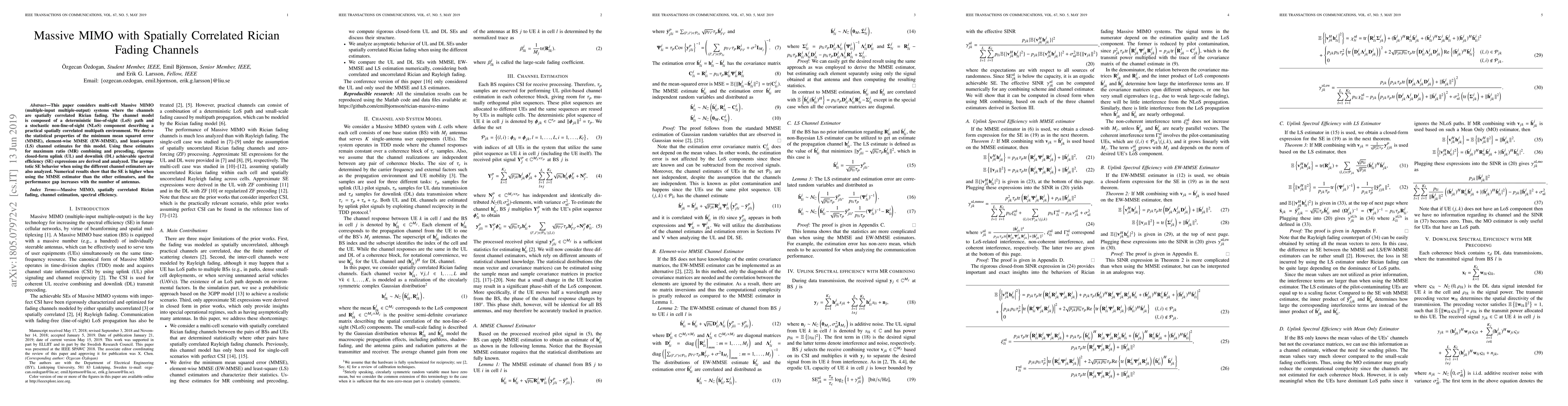 This paper investigates multi-cell Massive MIMO systems under spatially correlated Rician fading channels, deriving statistical properties of various channel estimators and analyzing their impact on spectral efficiency. The MMSE estimator is shown to outperform others in terms of uplink and downlink spectral efficiency, especially with a larger number of antennas.