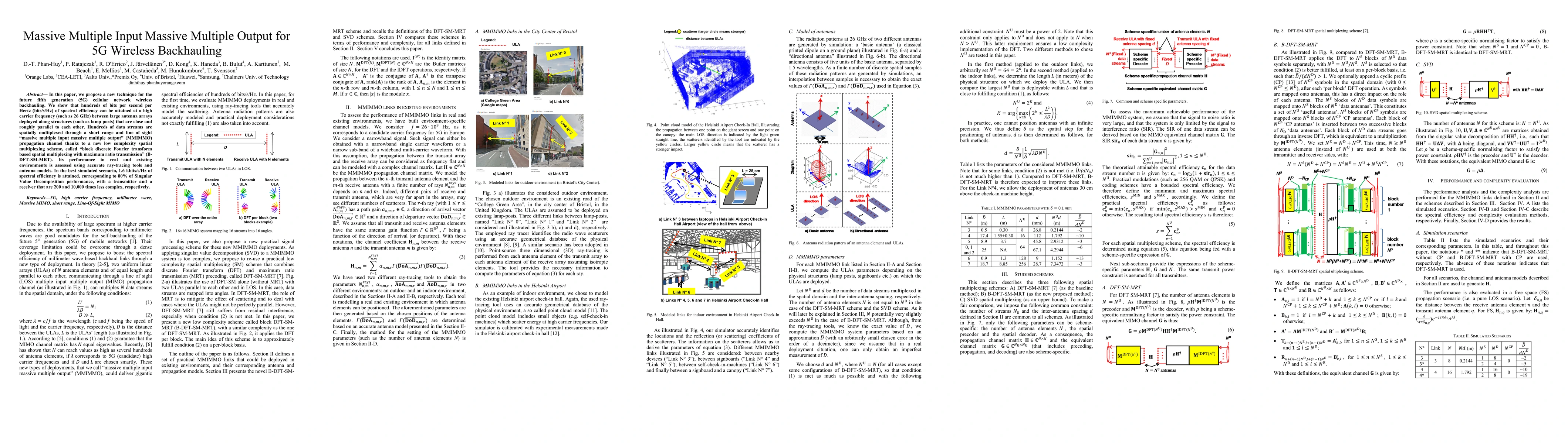 This paper proposes a novel wireless backhauling technique for 5G networks using Massive MIMO, achieving high spectral efficiency at 26 GHz with parallel, close large antenna arrays. A low-complexity spatial multiplexing scheme, block DFT-based SMT with MRT, is introduced, demonstrating 1.6 kbits/s/Hz in simulations, 80% of SVD performance, with significantly reduced transmitter and receiver complexity.