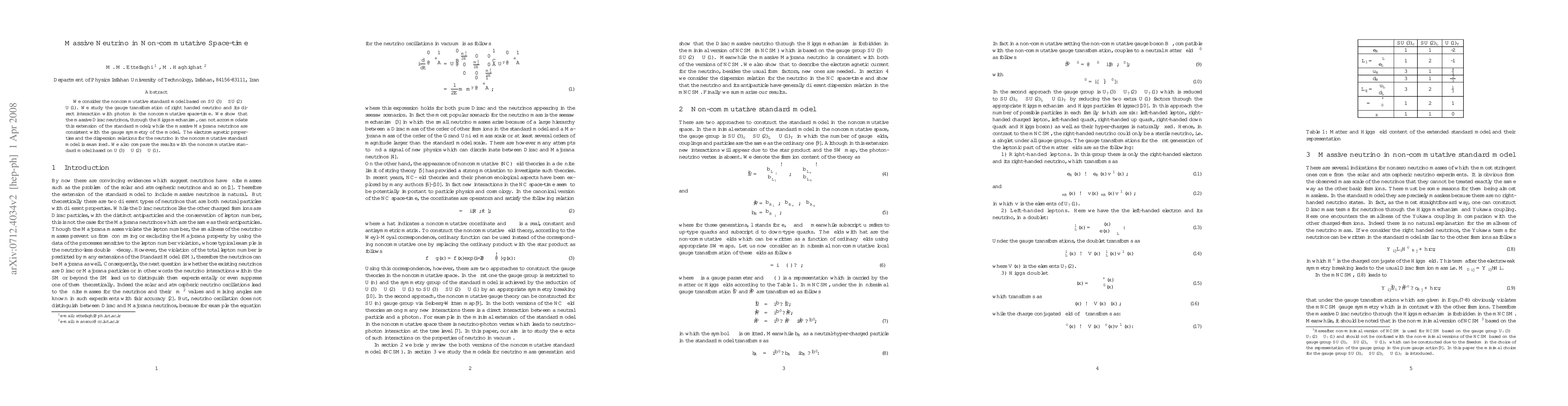 This research explores the integration of massive Majorana neutrinos in a noncommutative space-time model based on $SU(3) imes SU(2) imes U(1)$. It demonstrates that while massive Dirac neutrinos fail to uphold the model's gauge symmetry, massive Majorana neutrinos are consistent. The paper also compares these findings with a model based on $U(3) imes U(2) imes U(1)$, examining the electromagnetic properties and dispersion relations of neutrinos in the noncommutative standard model.