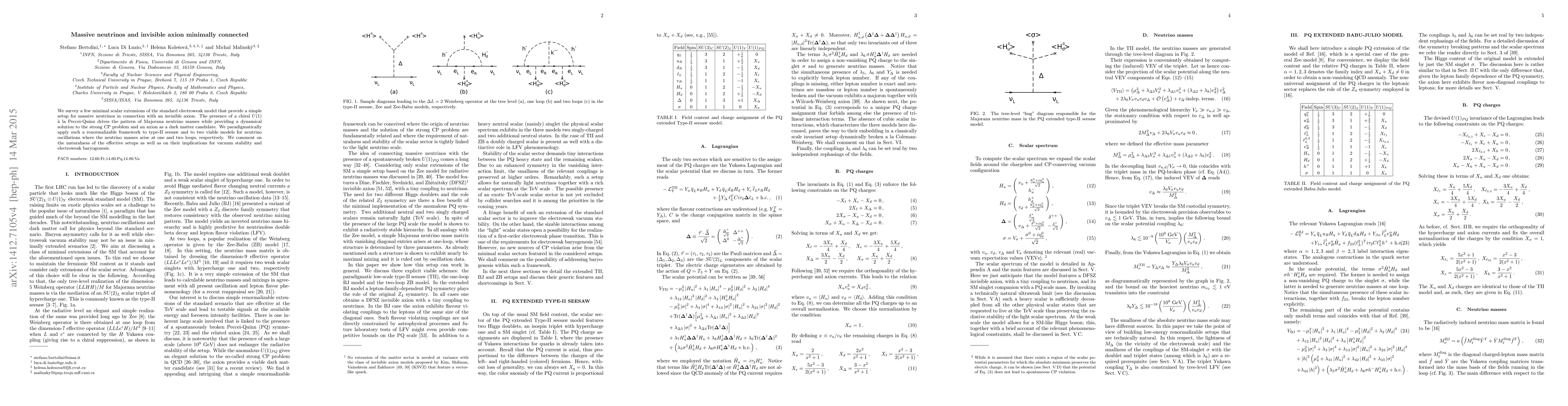 This paper explores minimal scalar extensions of the standard electroweak model that naturally incorporate massive neutrinos and an invisible axion, addressing the strong CP problem and proposing the axion as a dark matter candidate. It applies the framework to type-II seesaw and two-loop neutrino mass models, discussing their naturalness and implications for vacuum stability and electroweak baryogenesis.