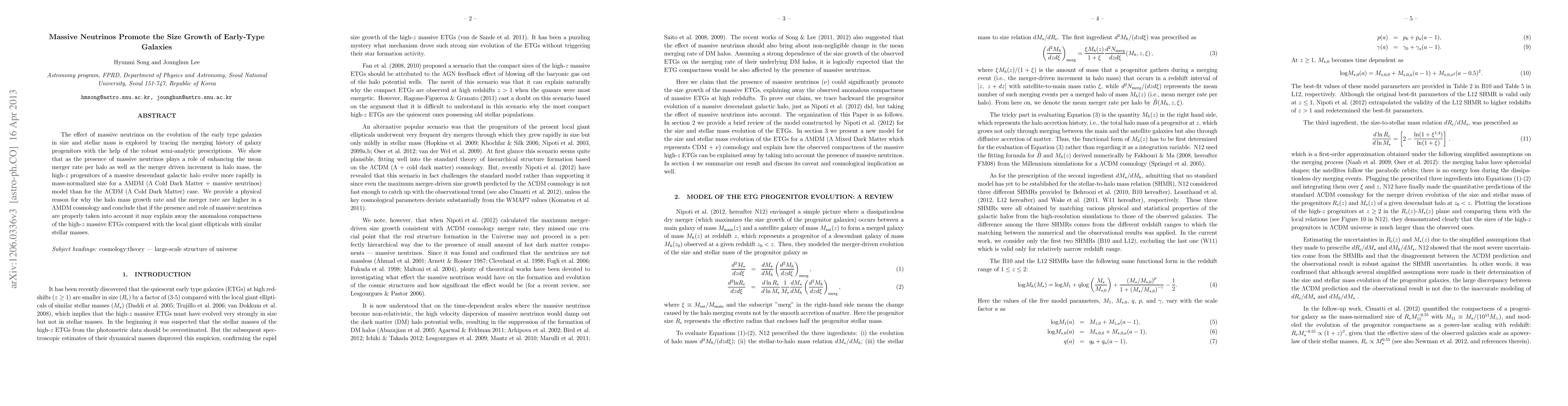 The effect of massive neutrinos on the evolution of the early type galaxies (ETGs) in size ($R_{e}$) and stellar mass ($M_{\star}$) is explored by tracing the merging history of galaxy progenitors with the help of the robust semi-analytic prescriptions. We show that as the presence of massive neutrinos plays a role of enhancing the mean merger rate per halo, the high-$z$ progenitors of a descendant galaxy with fixed mass evolves much more rapidly in size for a $\Lambda$MDM ($\Lambda$CDM + massive neutrinos) model than for the $\Lambda$CDM case. The mass-normalized size evolution of the progenitor galaxies, $R_{e}[M_{\star}/(10^{11}M_{\odot})]^{-0.57}\propto (1+z)^{-\beta}$, is found to be quite steep with the power-law index of $\beta\sim 1.5$ when the neutrino mass fraction is $f_{\nu}=0.05$, while it is $\beta\sim 1$ when $f_{\nu}=0$. It is concluded that if the presence and role of massive neutrinos are properly taken into account, it may explain away the anomalous compactness of the high-$z$ ETGs compared with the local ellipticals with similar stellar masses.