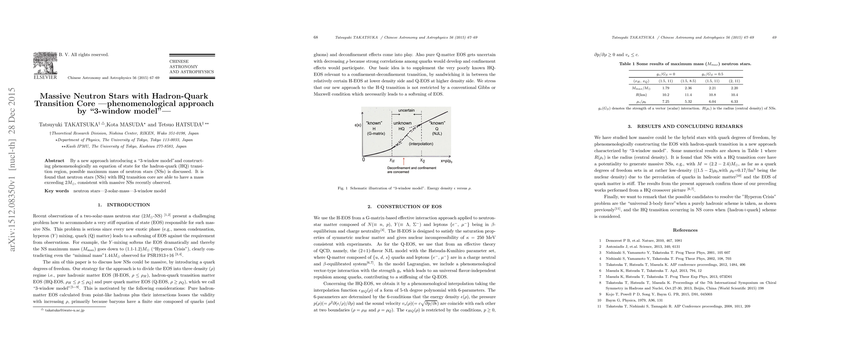 This research introduces a '3-window model' to construct a phenomenological equation of state for neutron stars with a hadron-quark transition core. It concludes that such neutron stars can have a mass exceeding two solar masses, aligning with observed massive neutron stars.