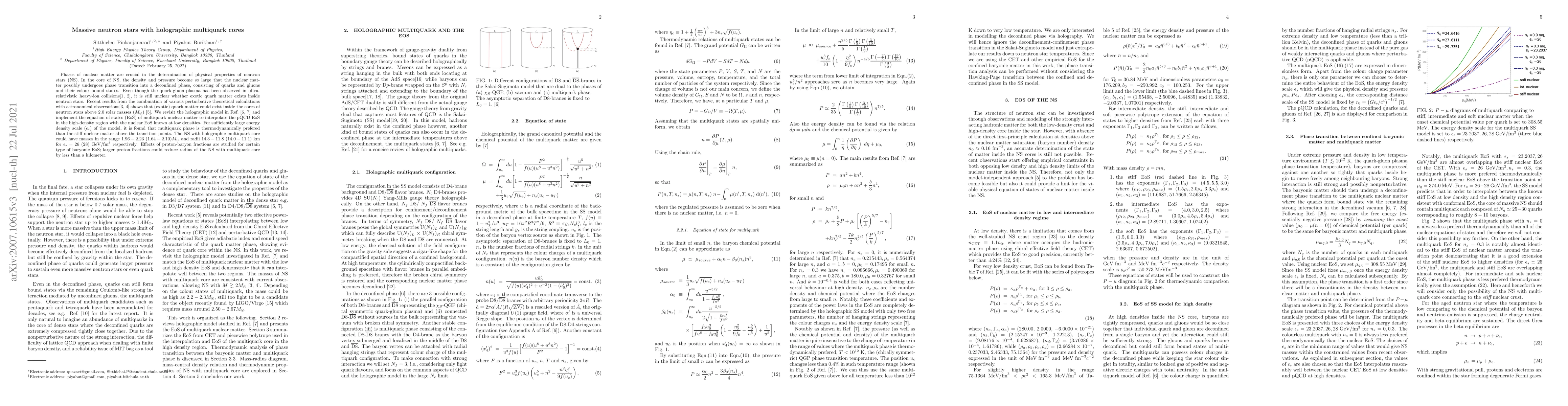 This paper explores the possibility of neutron stars (NS) having cores composed of holographic multiquark matter, suggesting that such stars could exist with masses up to 2.23 solar masses and radii between 11.1 and 14.3 km. The study combines holographic models with perturbative theoretical calculations to propose that multiquark phases are thermodynamically favored over nuclear matter in high-density regions.