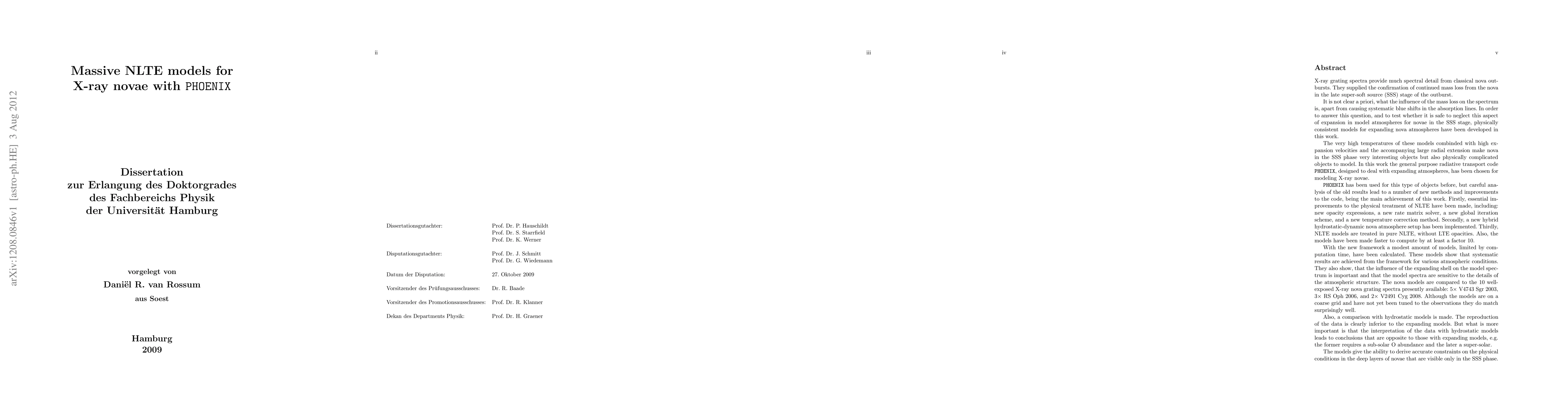 X-ray grating spectra provide the confirmation of continued mass loss from novae in the super-soft source (SSS) phase of the outburst. In this work expanding nova atmosphere models are developed and used to study the effect of mass loss on the SSS spectra. The very high temperatures combined with high expansion velocities and large radial extension make nova in the SSS phase very interesting but also difficult objects to model. The radiation transport code PHOENIX was applied to SSS novae before, but careful analysis of the old results has revealed a number of problems which lead to new methods and improvements to the code: 1) an improved NLTE module (a new opacity formalism, rate matrix solver, global iteration scheme, and temperature correction method); 2) a new hybrid hydrostatic-dynamic nova atmosphere setup; 3) the models are treated in pure NLTE (no LTE approximation for any opacity). With the new framework a modest amount of models (limited by computation time) are calculated. These show: 1) systematic behaviour for various atmospheric conditions, 2) the effect of expansion on the model spectrum is significant, and 3) the spectra are sensitive to the details of the atmospheric structure. The models are compared to the ten well-exposed grating spectra presently available: 5x V4743 Sgr, 3x RS Oph, and 2x V2491 Cyg. Although the models are on a coarse grid they do match the observations surprisingly well. Also, hydrostatic models are computed. The reproduction of the data is clearly inferior to the expanding models and, more importantly, their interpretation with hydrostatic models leads to conclusions opposite to those from expanding models. The models enable the derivation of accurate constraints on the physical conditions deep in the nova atmosphere that are revealed only in the SSS phase.