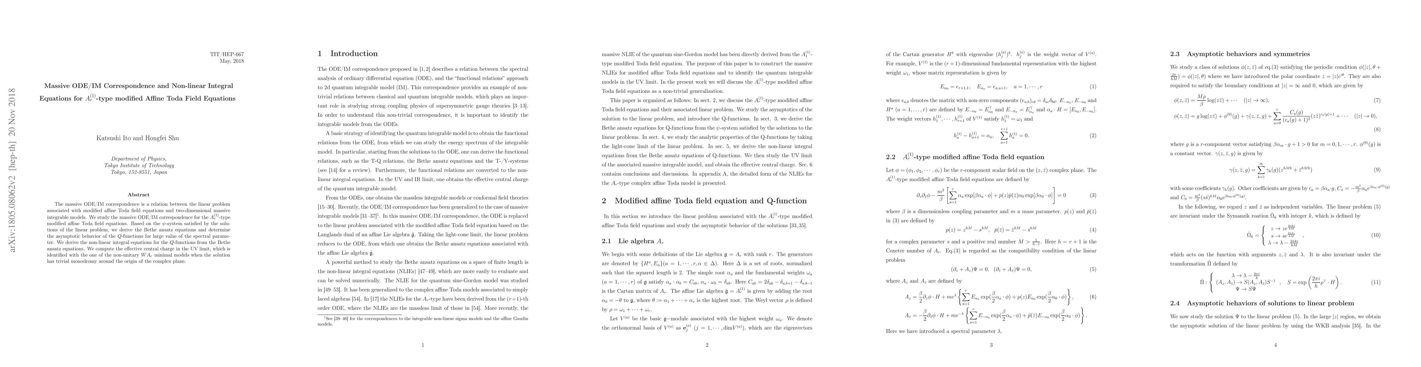 This paper explores the massive ODE/IM correspondence for $A_r^{(1)}$-type modified affine Toda field equations, deriving Bethe ansatz equations and non-linear integral equations for the Q-functions, and identifies the effective central charge with that of non-unitary $WA_r$ minimal models under specific conditions.